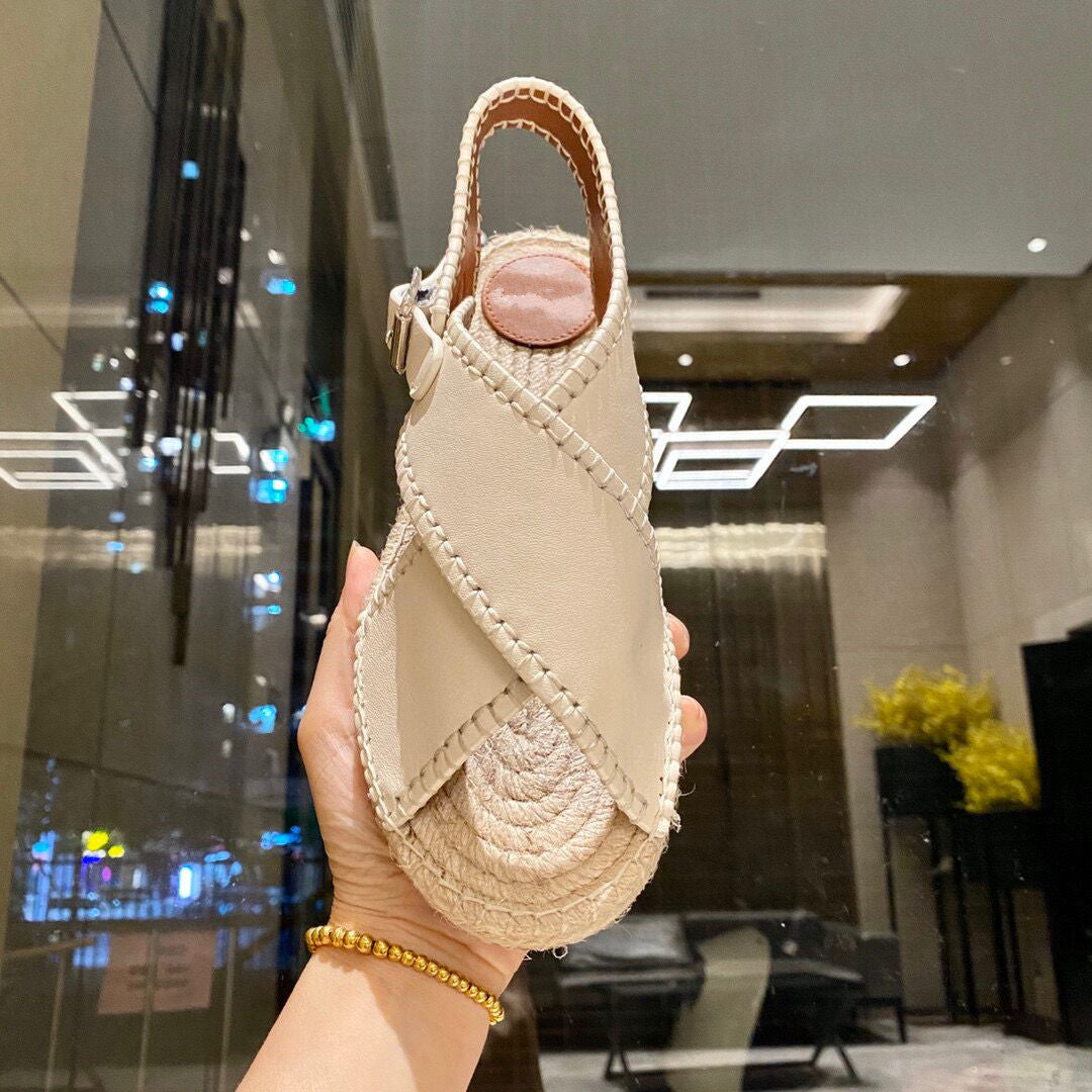 Women's Summer Hemp Rope Woven Leather Flat Sandals