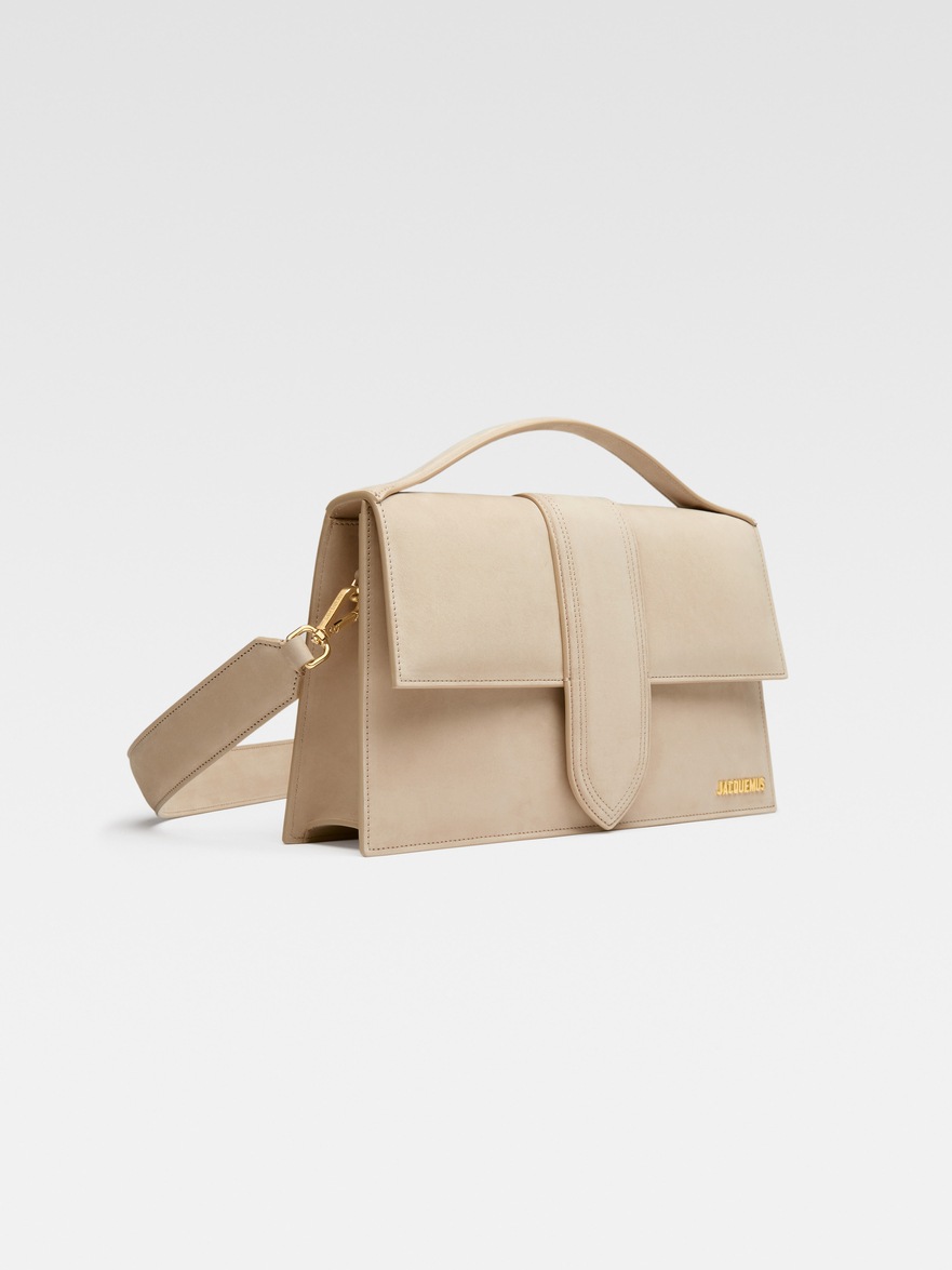 - Gold metal logo and hardware