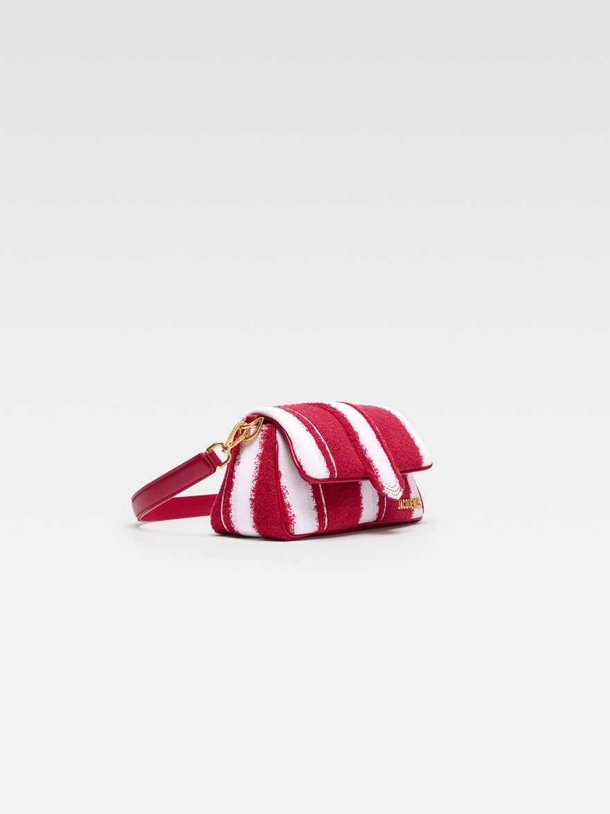 |||Mini puffed flap bag- Soft cotton jacquard bag with a striped pattern