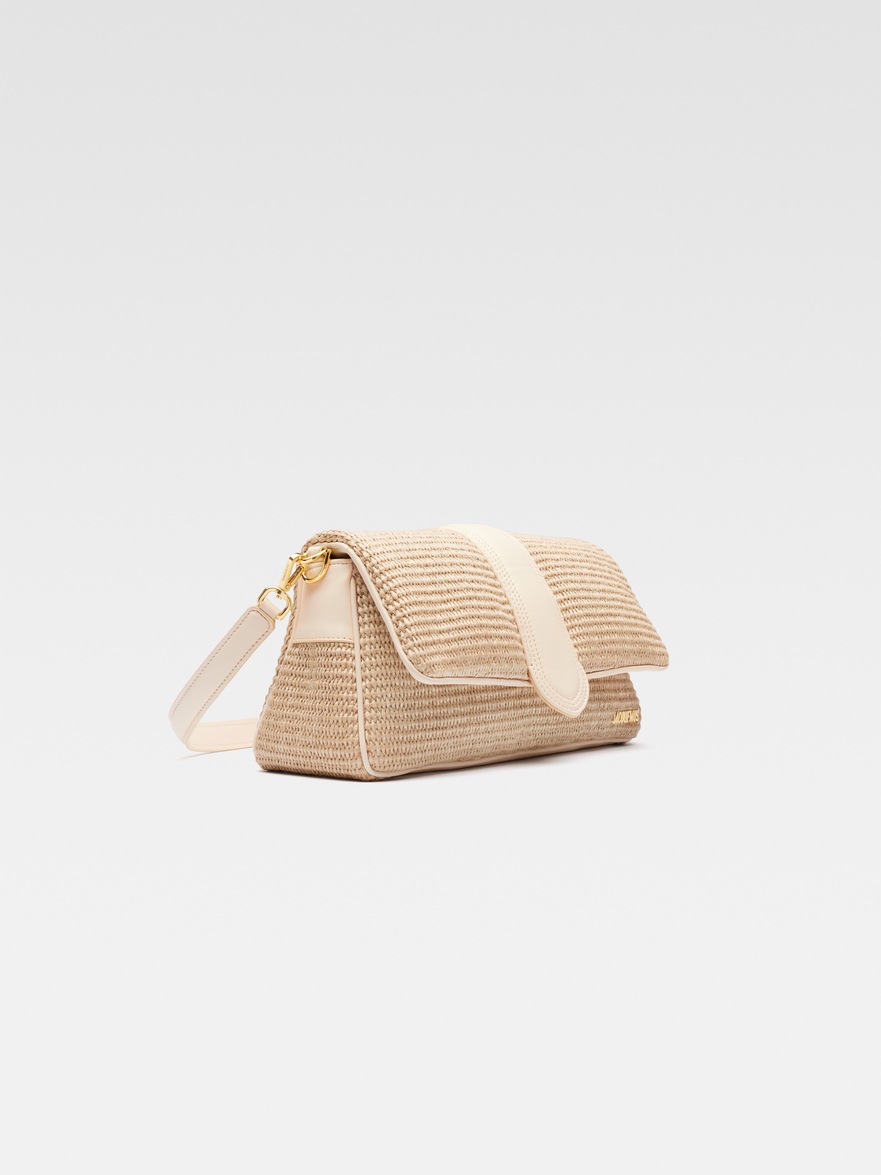 - Soft padded woven faux raffia bag