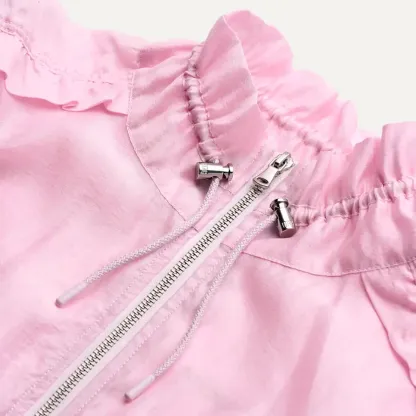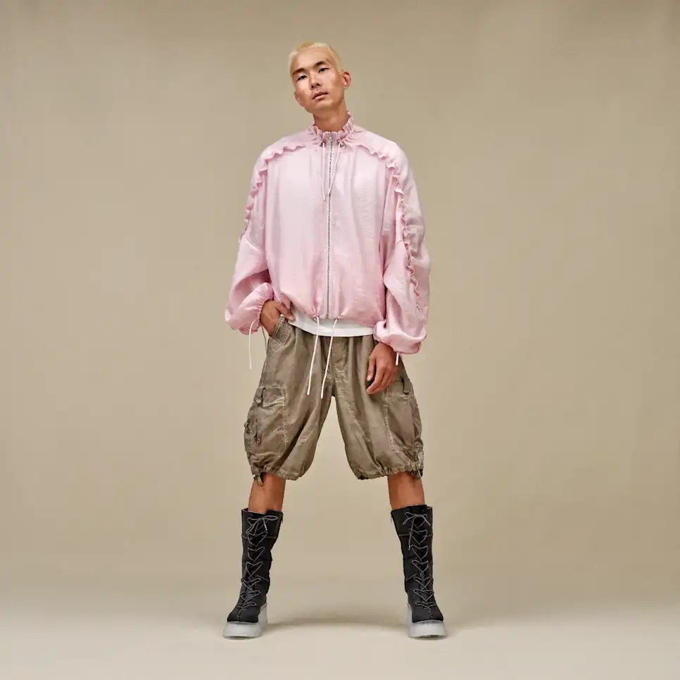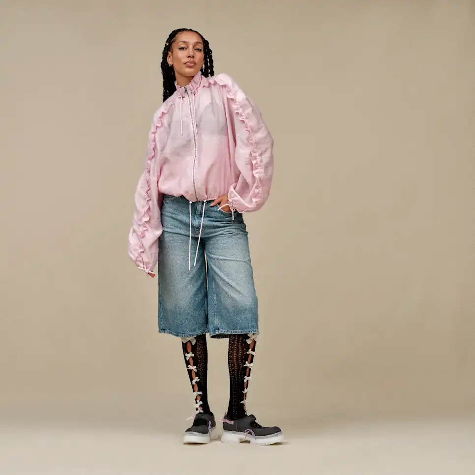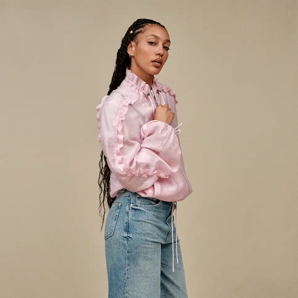 Introducing our Areum Jacket: a co-creation with model, activist, and performer Jungle. She's passionate about making self-expression comfortable for all, which this jacket is all about. Together with Jungle, we named this jacket Areum, which comes from the Korean word for "beauty." All things beautiful speak to Jungle's positive outlook. Featuring ruched ruffle sleeves and a transparent fabric, this jacket represents the power in being bold, and being yourself.