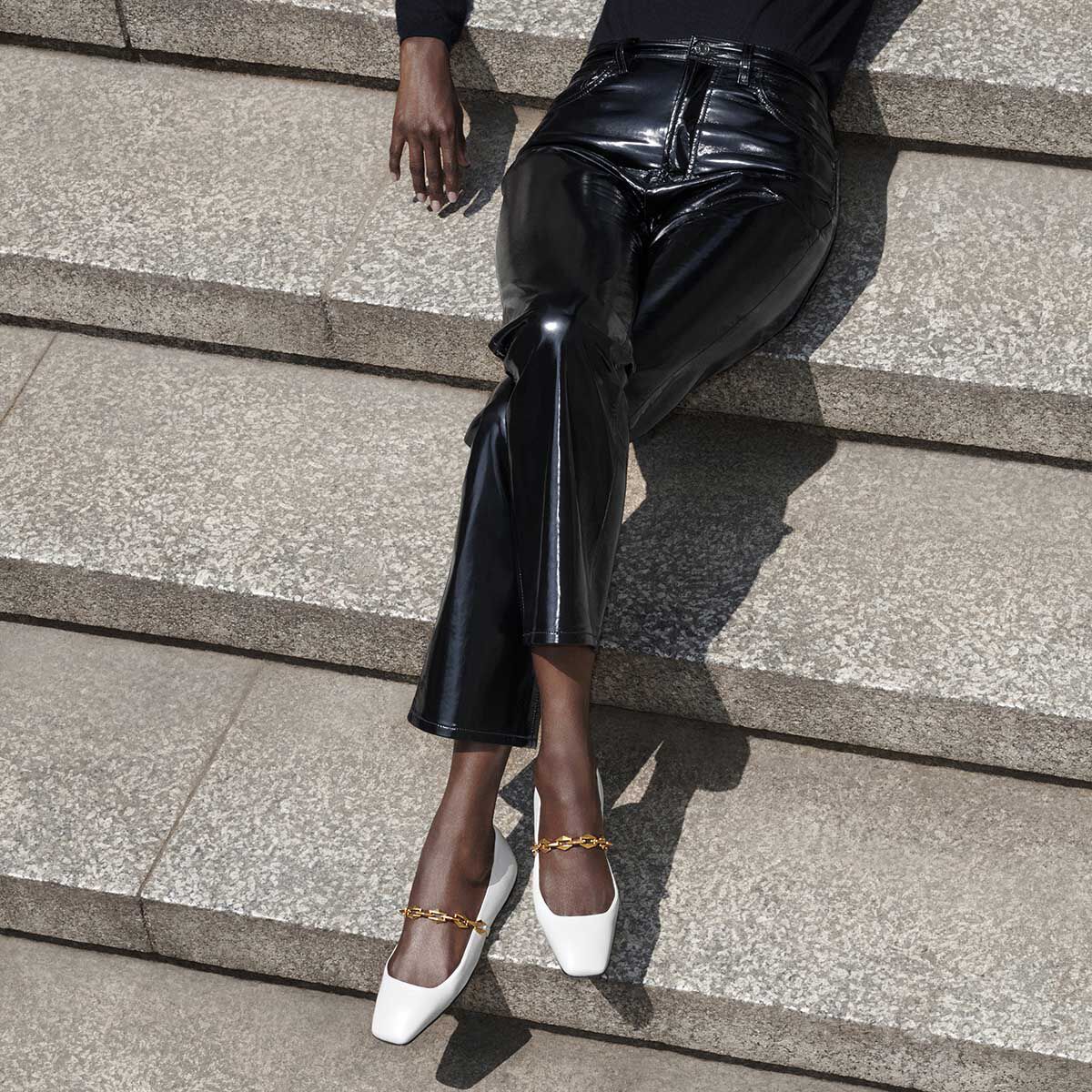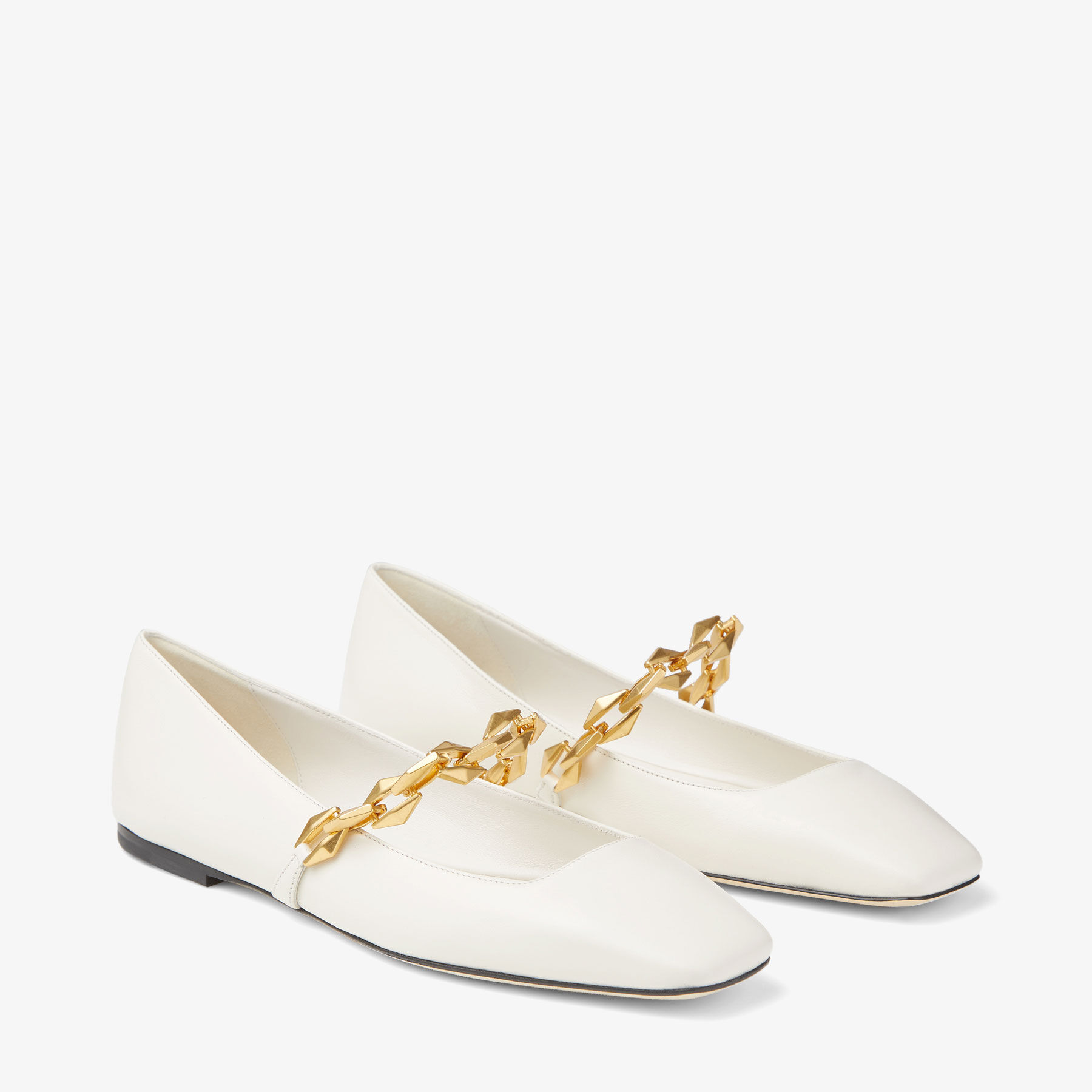DIAMONDTILDAFLATNAPOur Tilda flats arrive in luxe Nappa leather, featuring a distinct multifaceted chain; signature to our Diamond collection. A contemporary approach to a timeless shoe, this versatile silhouette is complemented by a modern square toe.
