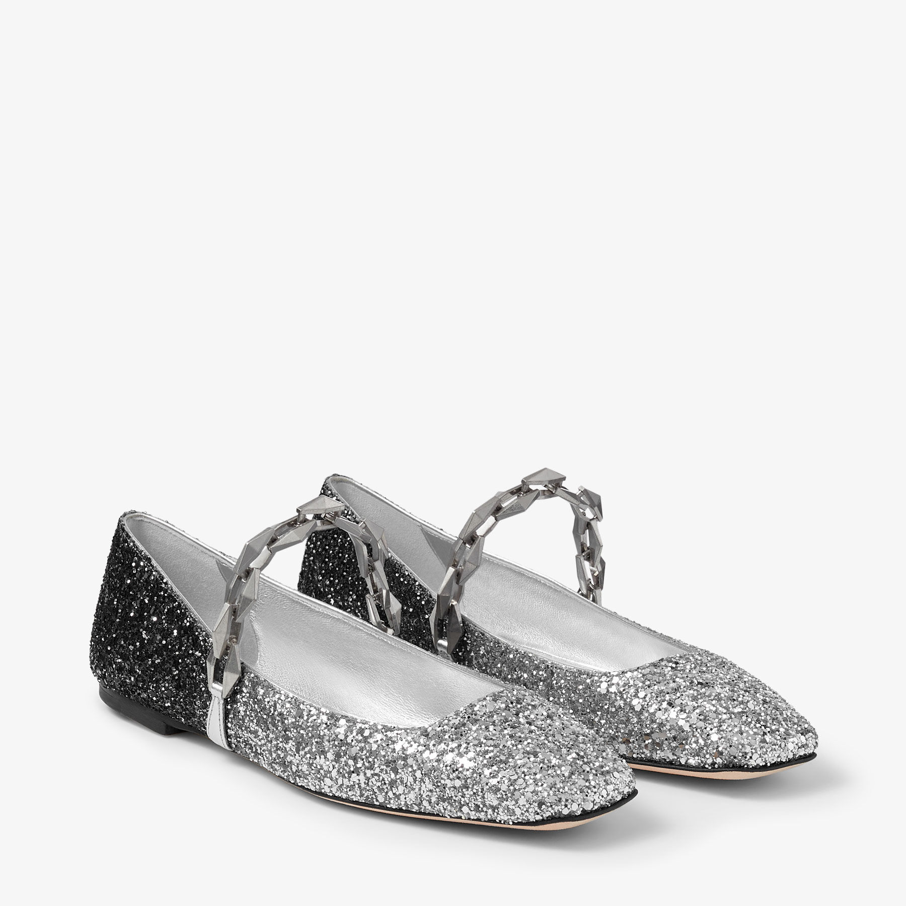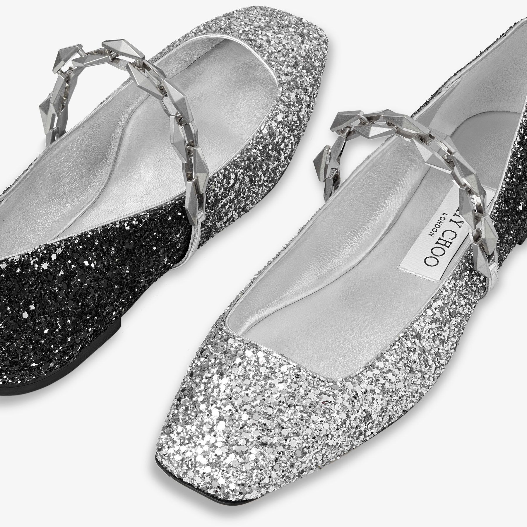Item No.DIAMONDTILDAFLATCGDThe Tilda flats are a standout design, crafted with a glitter finish. This pair features a distinctive brushed gold chain, signature to the Diamond collection, it is meticulously handcrafted in a day-long process of moulding and plating. It is a contemporary approach to a timeless shoe, in a versatile silhouette.