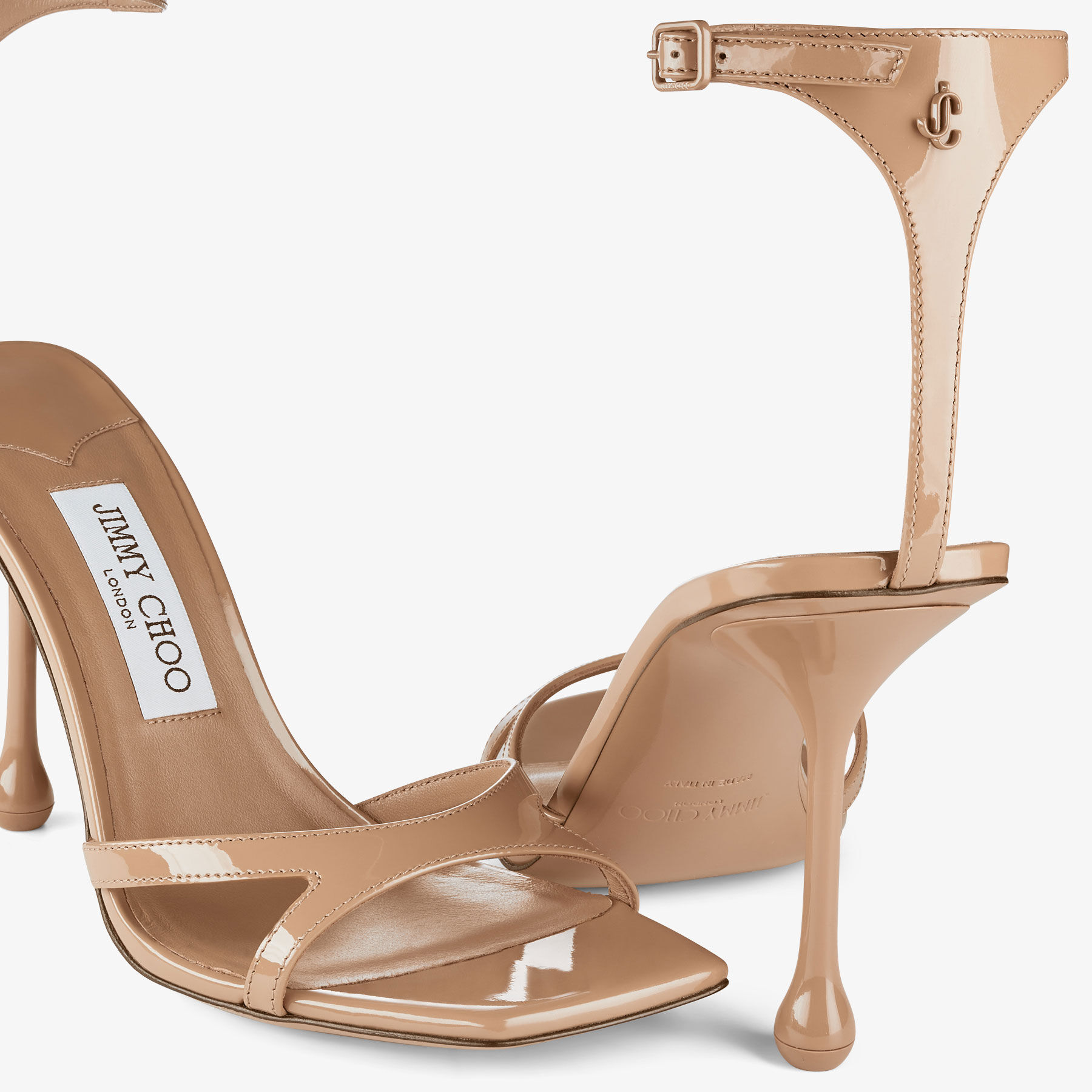 Item No.IXIASANDAL95PATThe Ixia is a barely-there sandal with a contemporary drop heel. Italian-crafted from patent leather in a muted biscuit tone, this modern shoe is an understated yet glamorous complement to your collection. It features a square toe, set on a flattering 95mm heel with an adjustable ankle strap fastening.