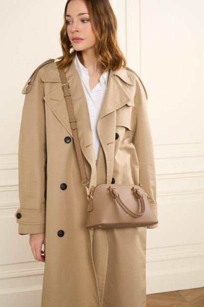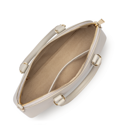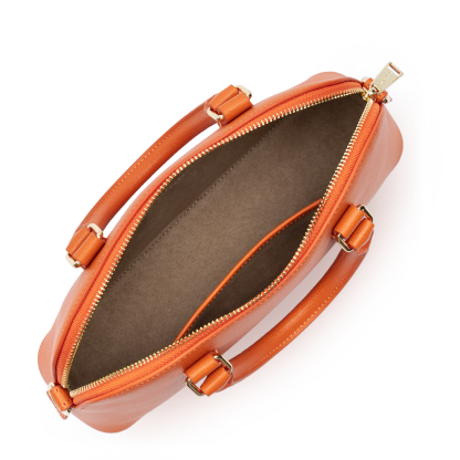 Ce sac à main est confectionné de refente de cuir de vachette finition grainé. Il comporte une grande poche principale, une poche intérieure zippée et une petite poche intérieure simple. Il se porte à la main, à l'épaule ou croisé.