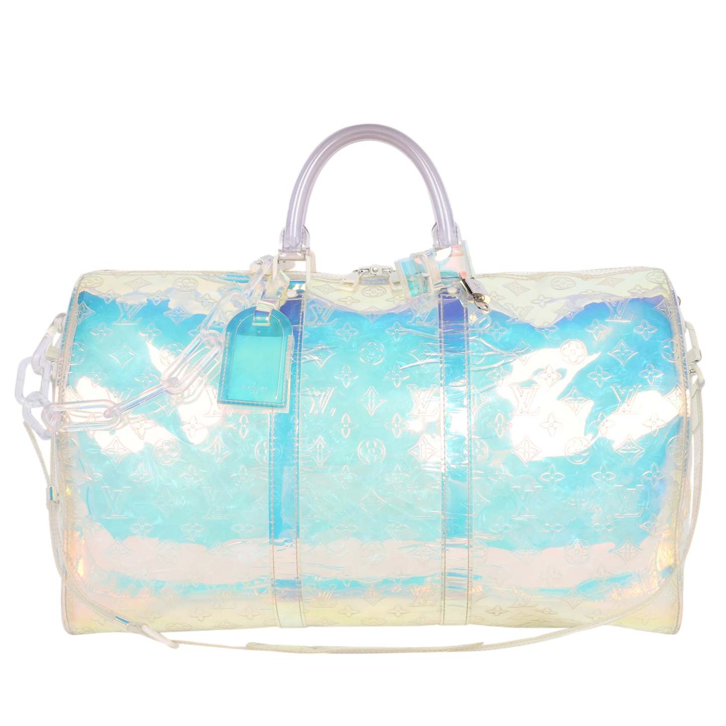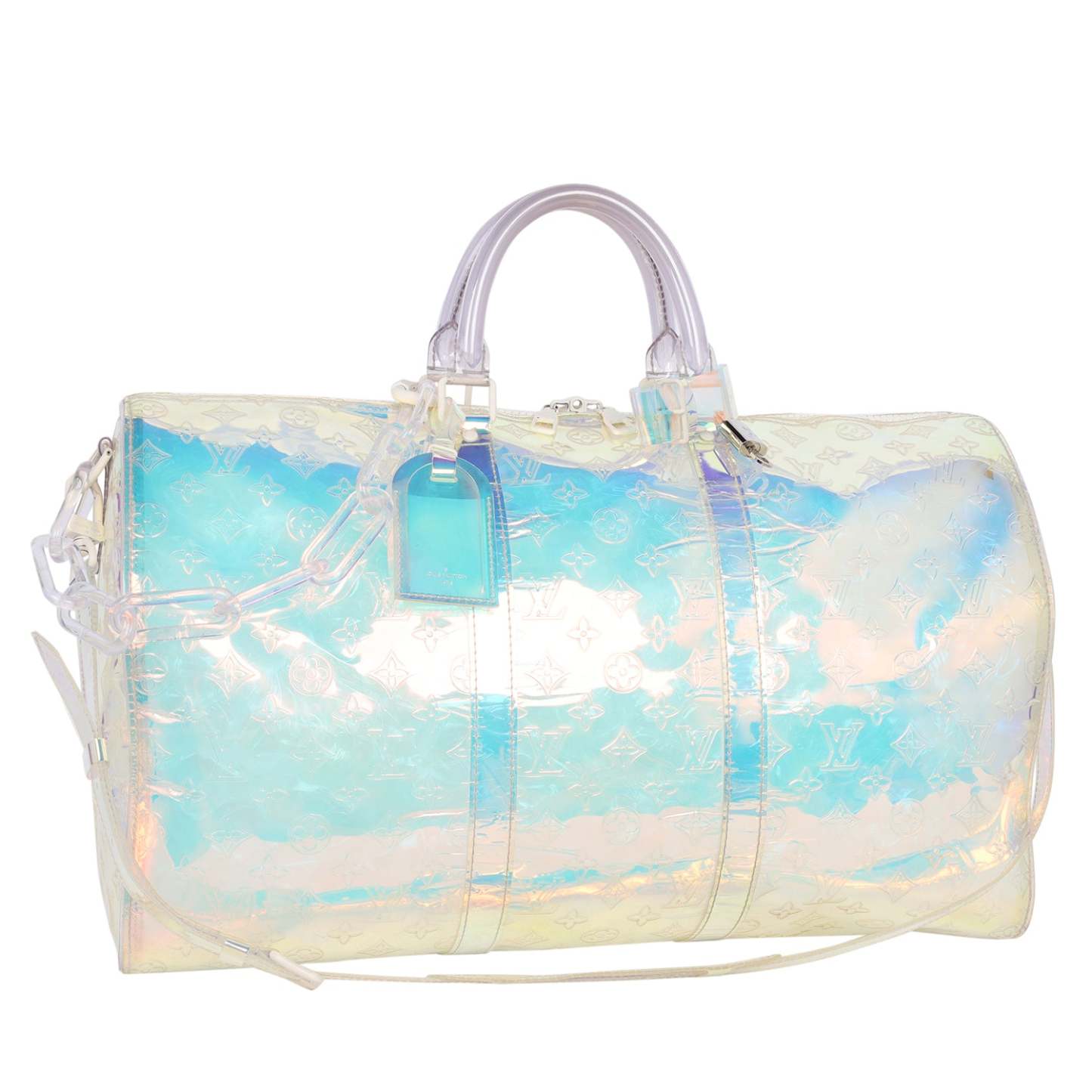 Authentic Keepall Bandouliere Monogram Prism 50 PVC Clear Multicolore Logo Weekend Travel Bag.