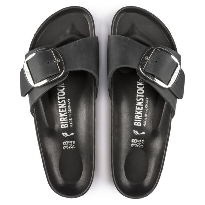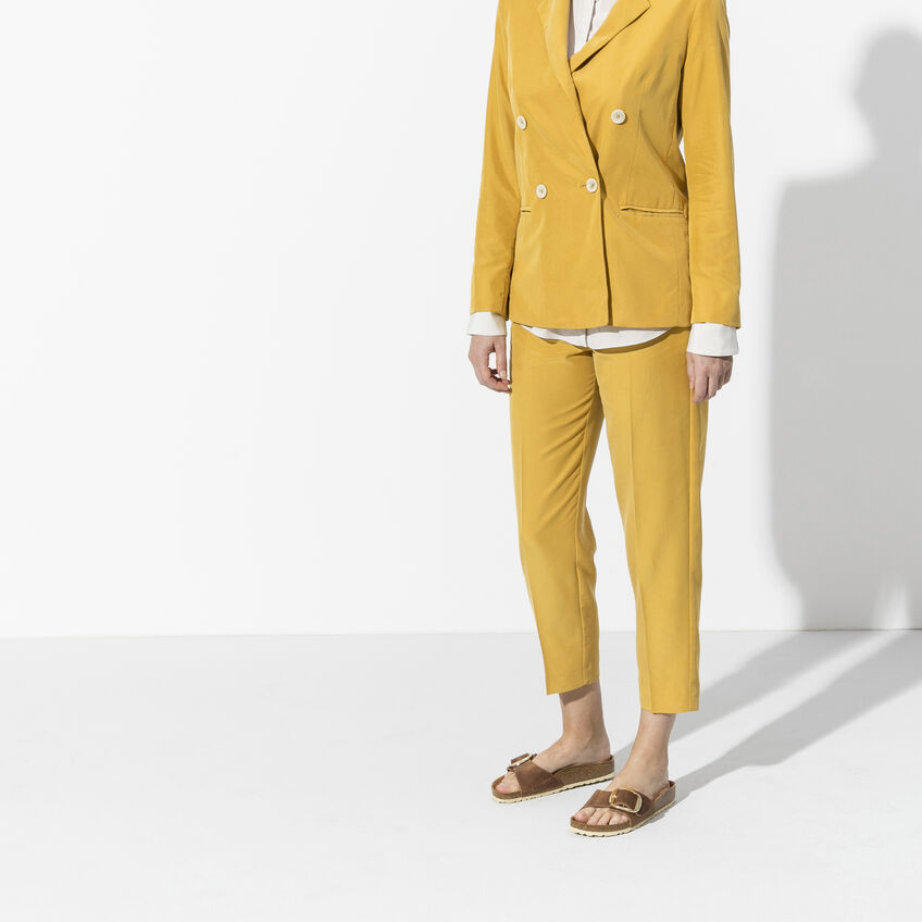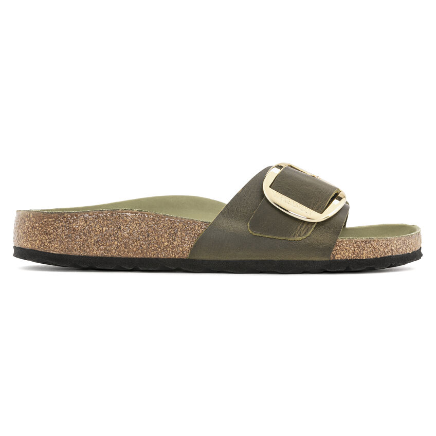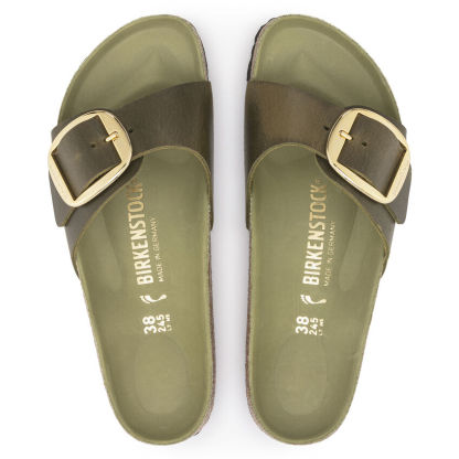 Il modello Birkenthtstock Madrid è un vero classico che entusiasma il mondo della moda con il suo design essenziale. La variante Big Buckle presenta una fibbia ad ardiglione grande ed elegante, un bel particolare che spicca su questi sandali molto sobri. Il sottopiede del plantare semi-exquisit è rivestito in morbida pelle liscia in colore coordinato alla scarpa. La tomaia è composta da pelle nabuk particolarmente spessa e oliata, lavorata a cuciture aperte.