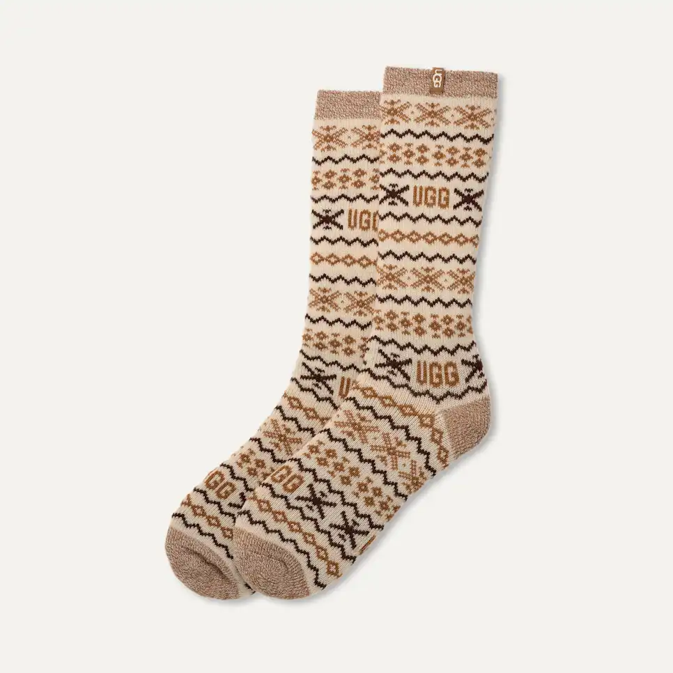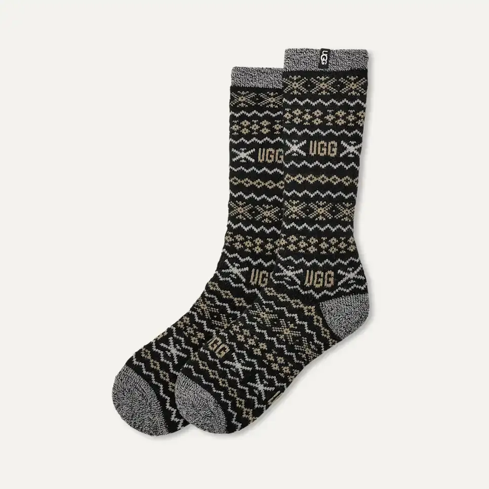 Nothing says cozy quite like a pair of patterned socks, don't you agree? Get into maximum comfort with our Keavy Cozy Crew. It features our signature UGGIsle print and contrasts on the heel, toe, and cuff.