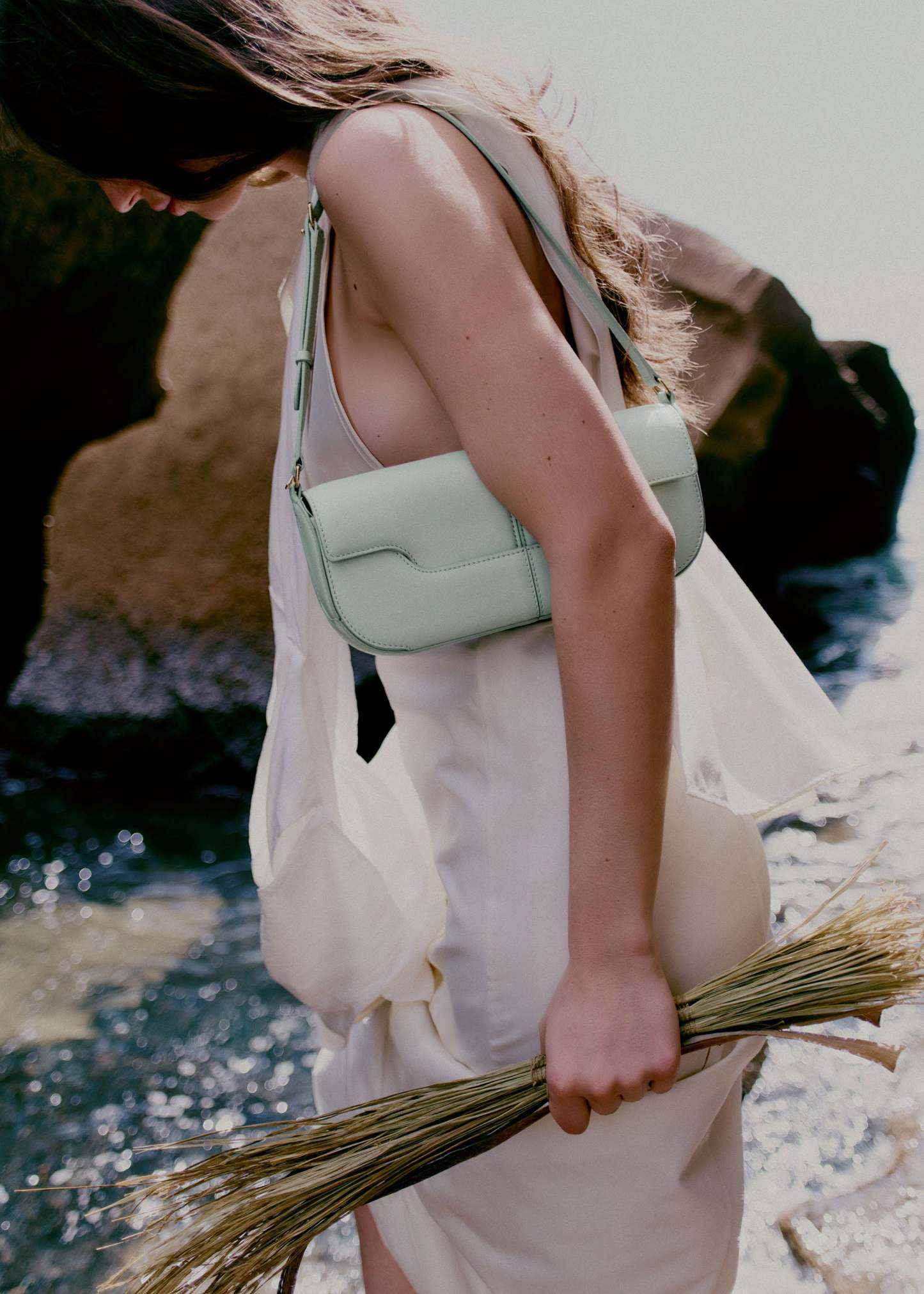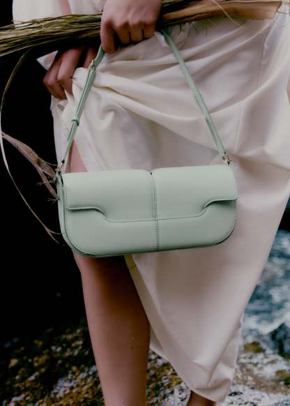 Fermé par un rabat, cet écrin est coupé dans un cuir de veau lisse, nappa. Réputé pour sa beauté naturelle et son toucher singulier, il revêt l'intérieur et l'extérieur du sac. La bandoulière réglable permet un porté court, « baguette ».