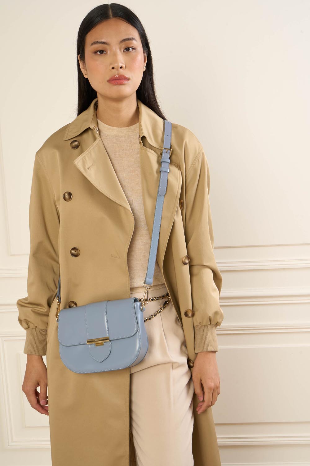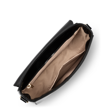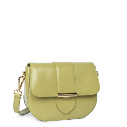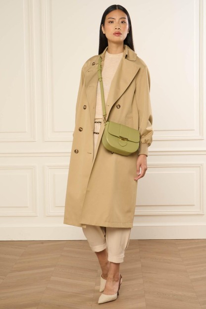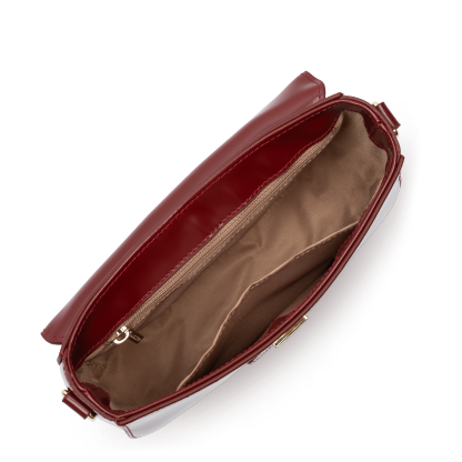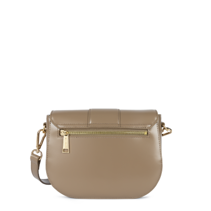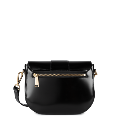 Ce petit sac trotteur est confectionné de cuir de vachette lisse. Il possède un rabat avec fermoir, une poche extérieure zippée, une poche intérieure zippée ainsi qu'une poche intérieure simple. Il se porte à l'épaule ou croisé.