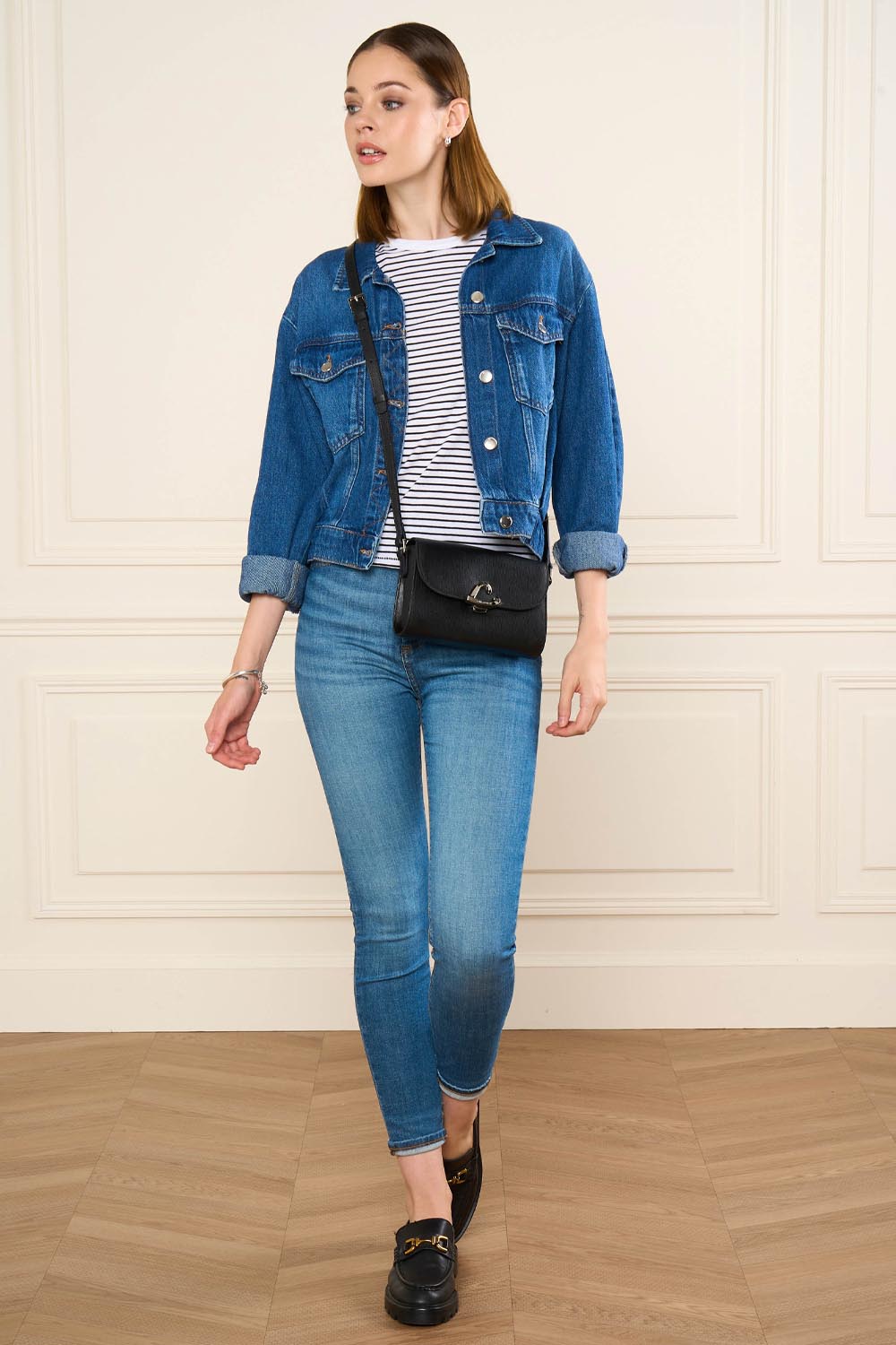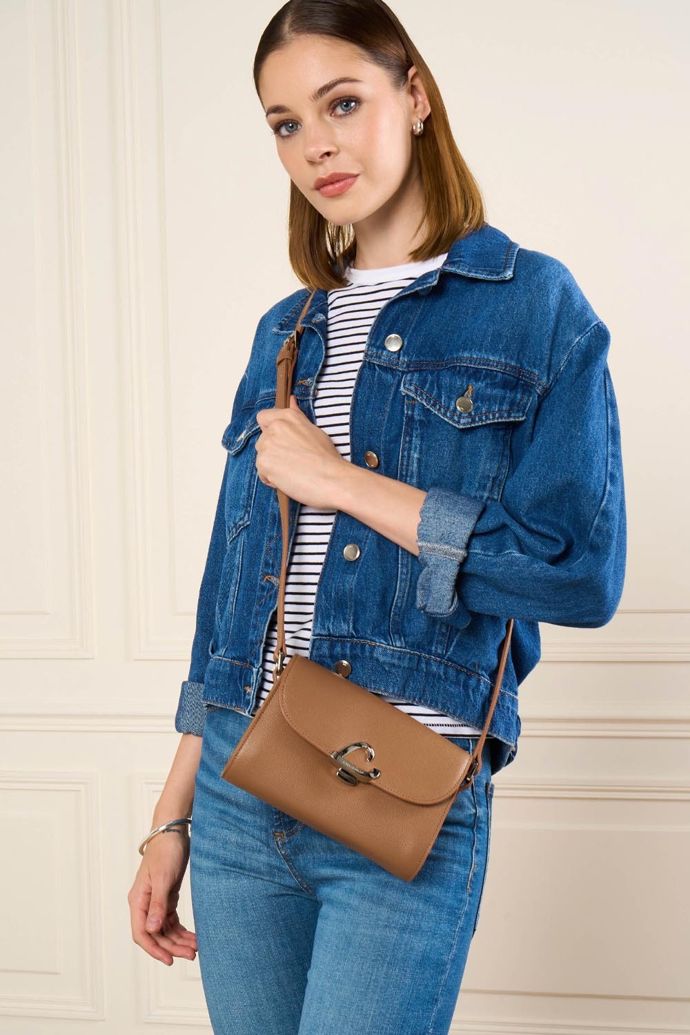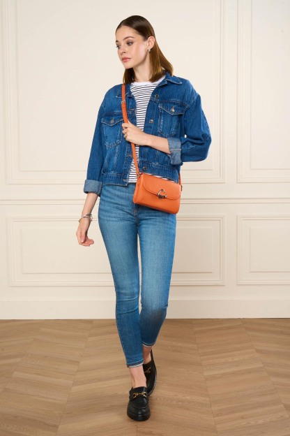 Ce petit sac trotteur est confectionné de refente de cuir de vachette grainé. Il comporte une poche intérieure simple, une poche intérieure zippée ainsi qu'une poche extérieure zippée. Il se porte à l'épaule ou croisé.
