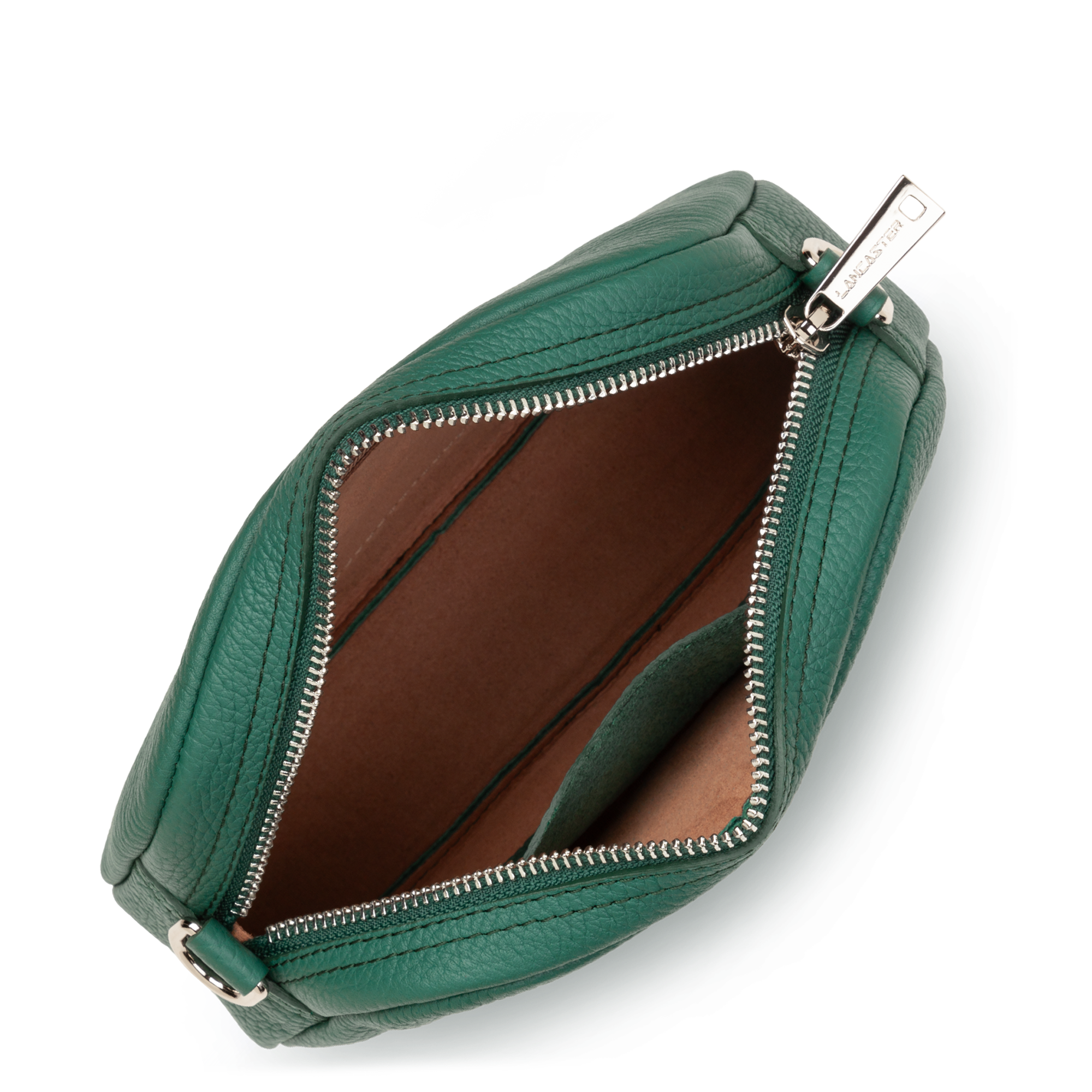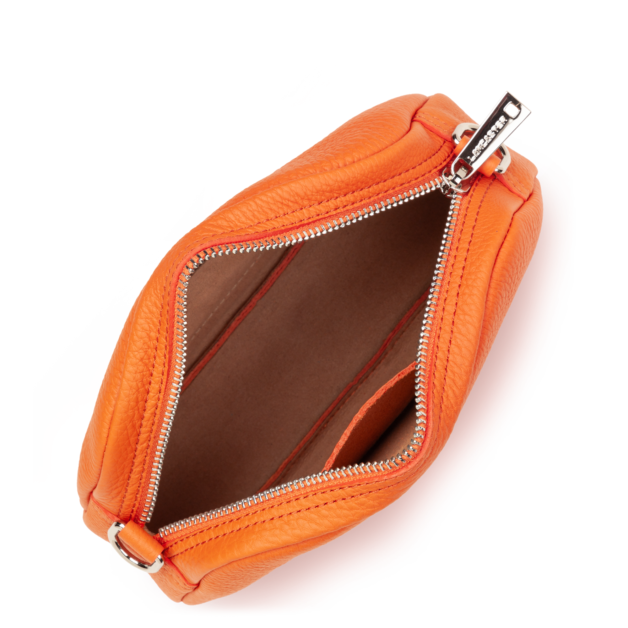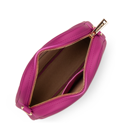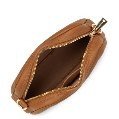 Ce petit sac trotteur est confectionné de cuir de taurillon. Il comporte une grande poche principale zippée. Il se porte à l'épaule ou croisé.