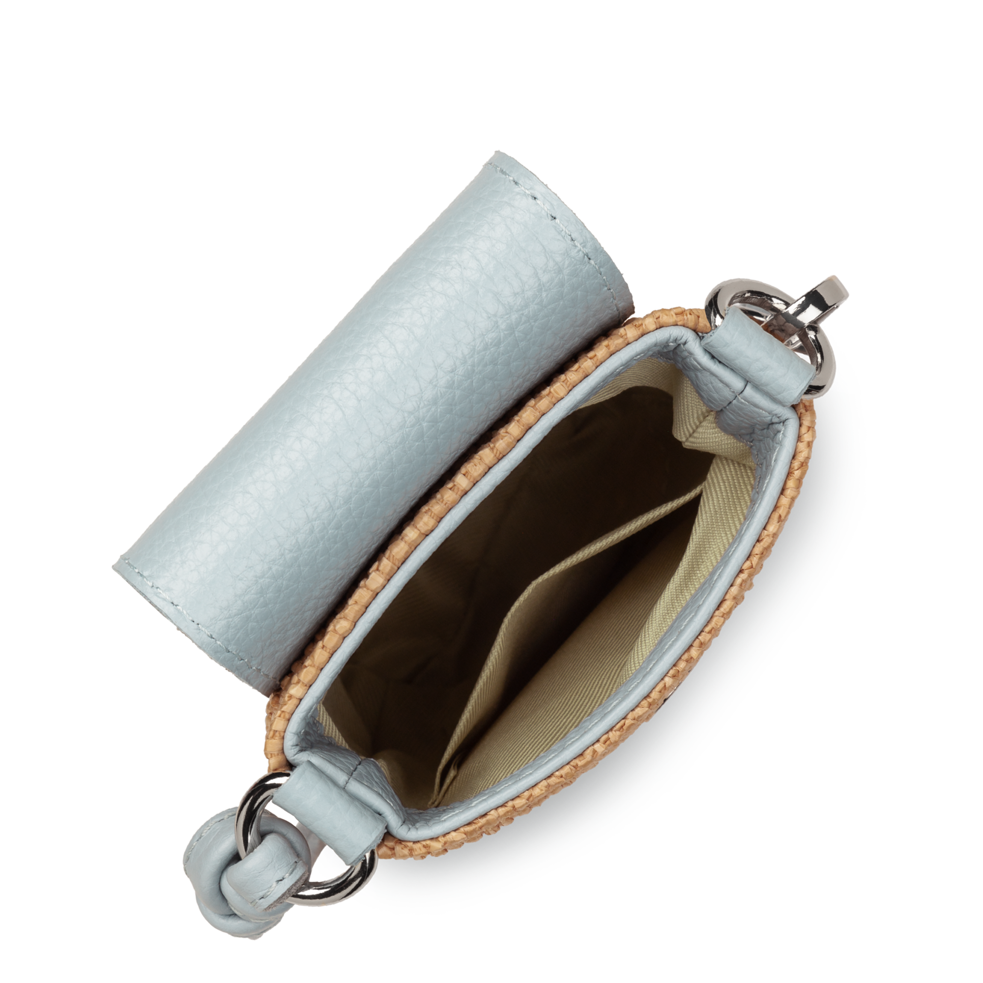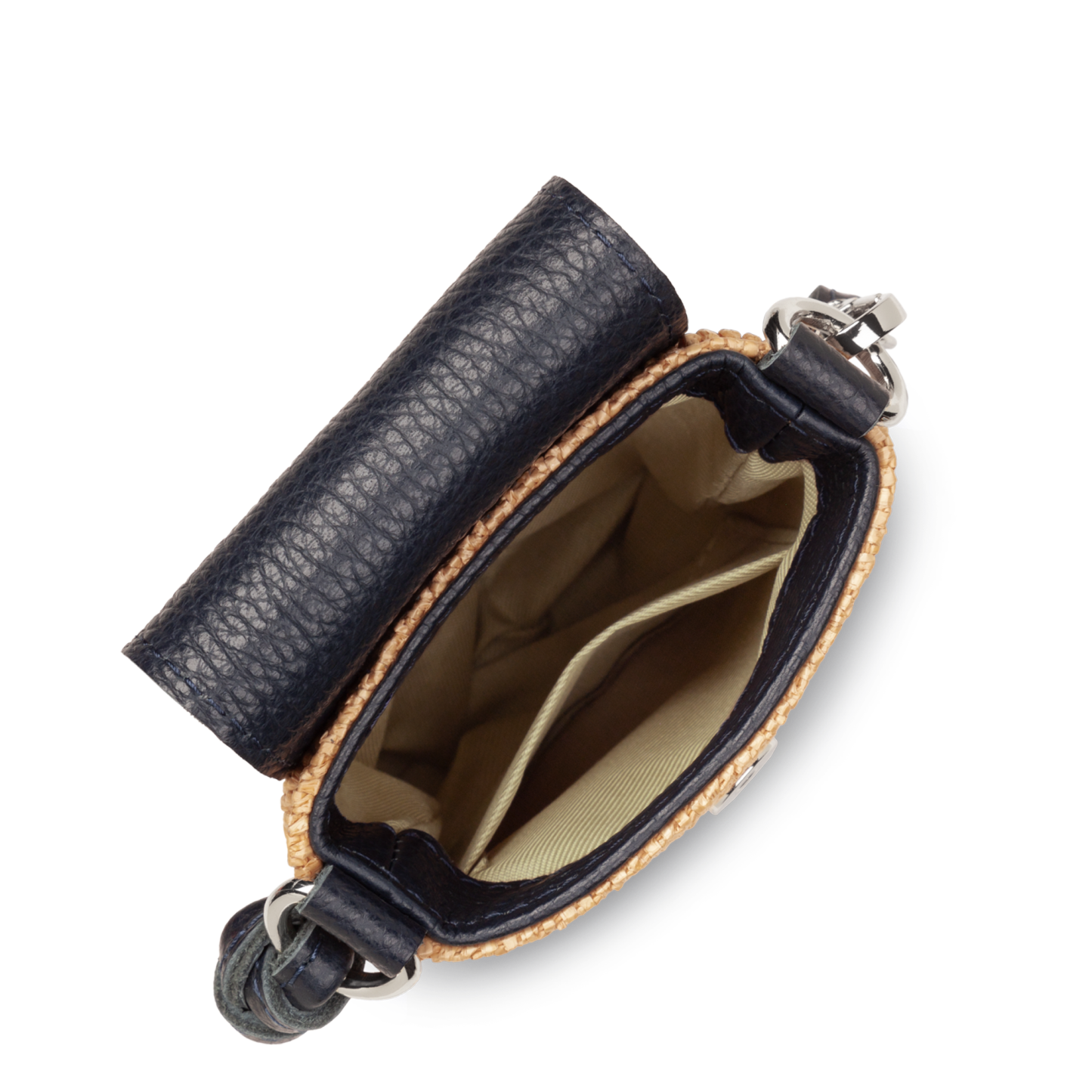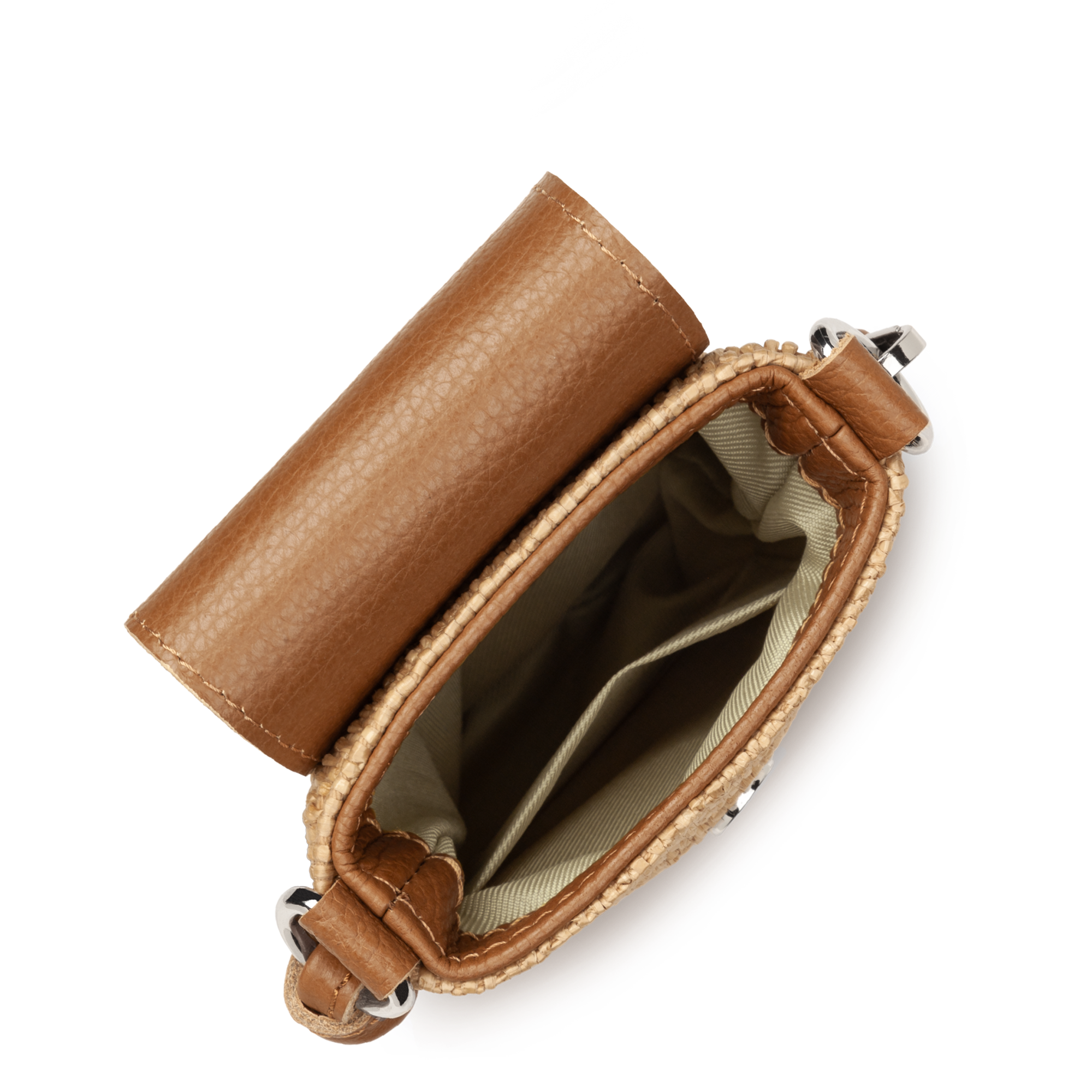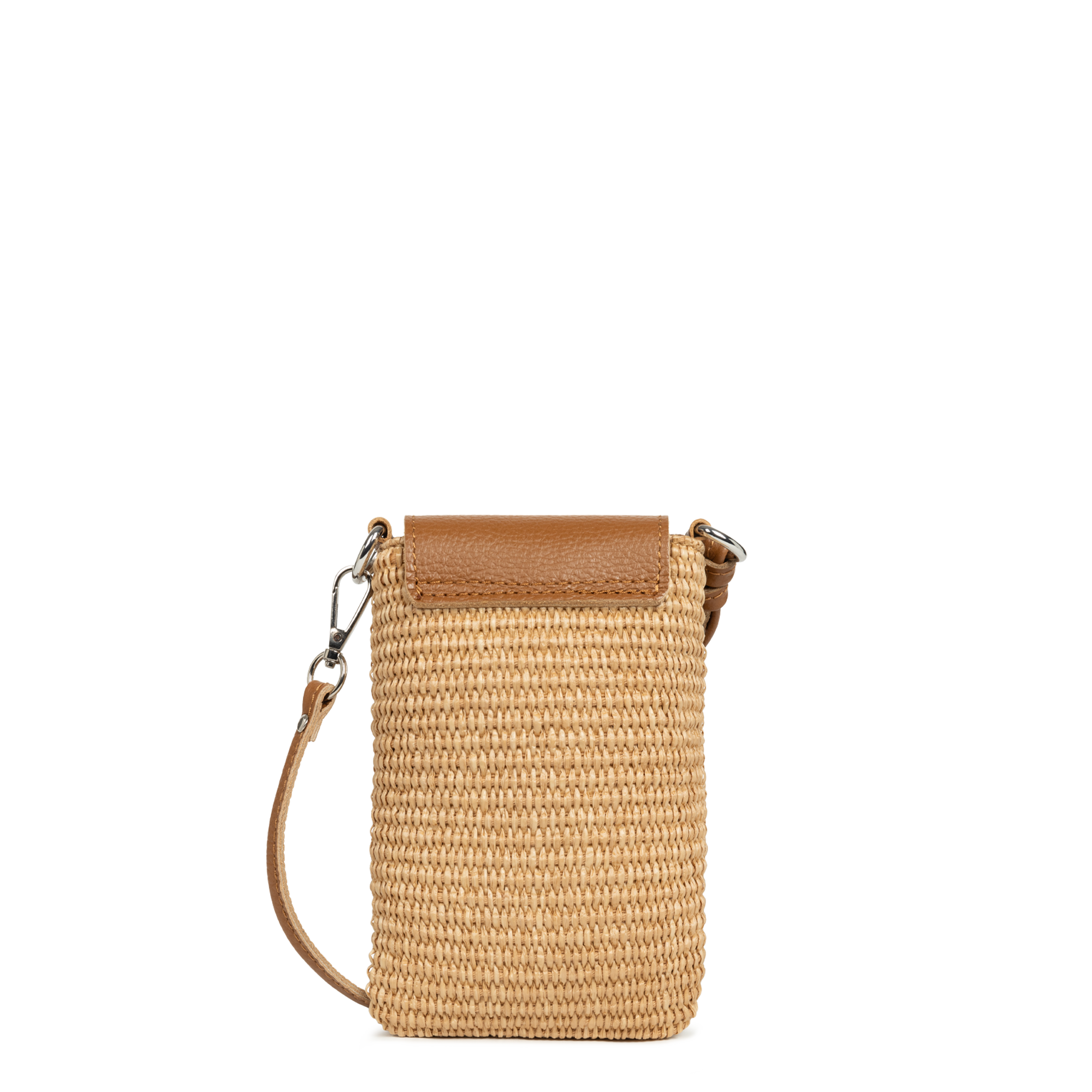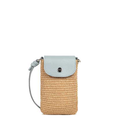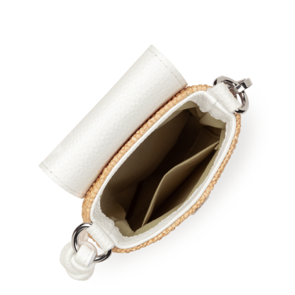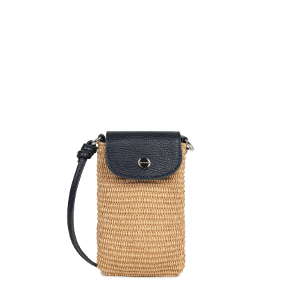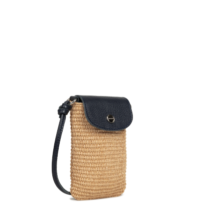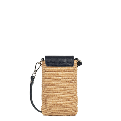 Cette pochette est confectionnée de paille naturelle garni de cuir de vachette. Elle comporte une poche intérieure simple. Elle se porte à l'épaule ou croisé.