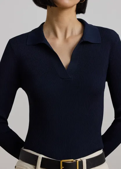 Rib-Knit Polo Sweater
