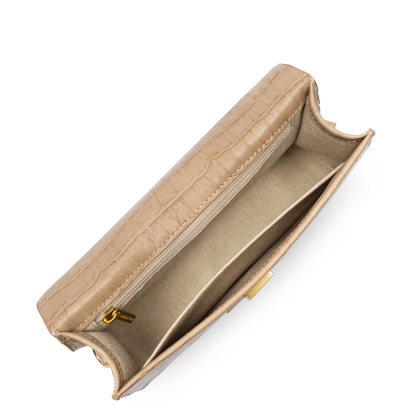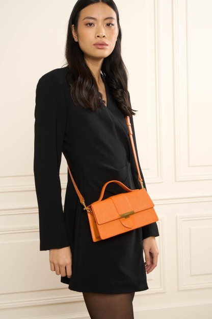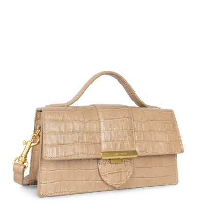 Ce sac à main est confectionné de cuir de vachette grainé. Il comporte une poche intérieure principale ainsi que deux petites poches de chaque côté. Il se porte à la main, à l'épaule ou croisé.