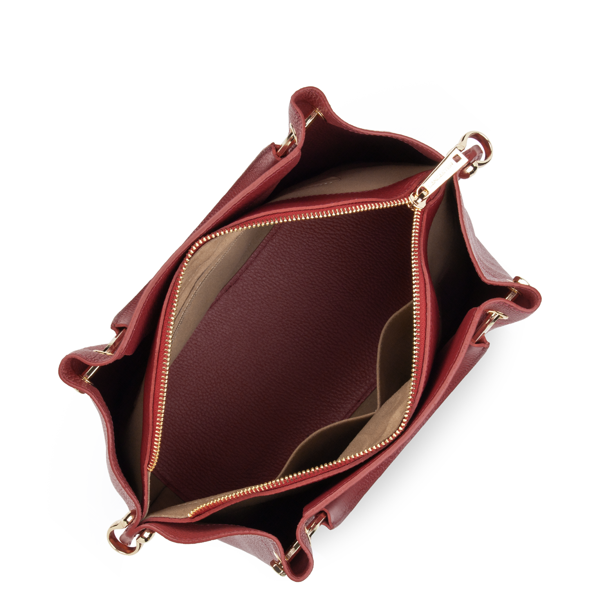 Compartiment central zippé, poche intérieure zippée, poche intérieure simple, emplacement téléphone