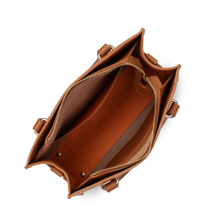 Ce sac à main est confectionné de cuir de vachette grainé. Il comporte une grande poche intérieure. Il se porte à la main, à l'épaule ou croisé.