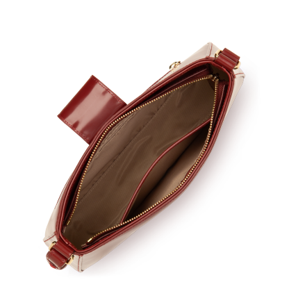 Ce sac à main est confectionné de cuir de vachette finition lisse. Il possède une grande pochette principale avec un rabat graphique comme fermoir ainsi qu'une poche intérieur simple et une poche extérieure zippée. Il se porte à la main, à l'épaule ou croisé.