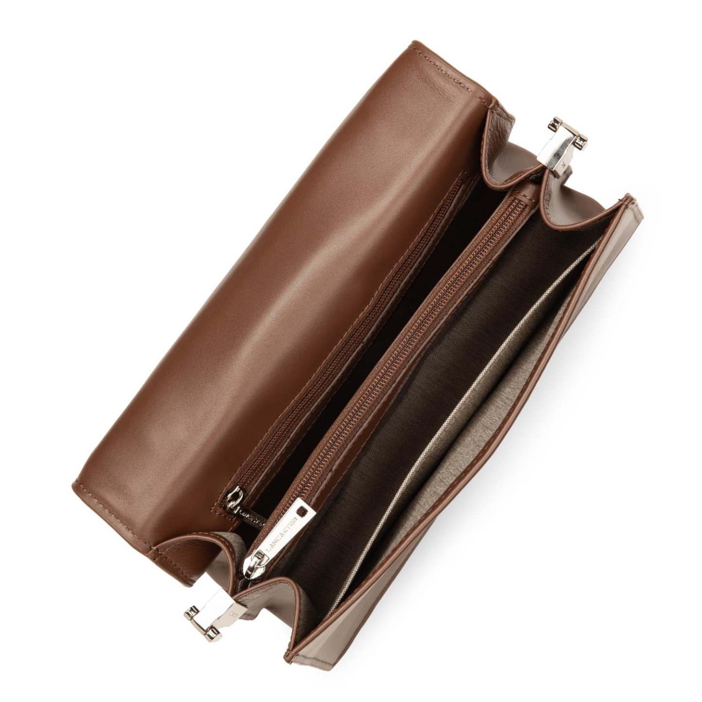 Ce grand sac à main est confectionné de cuir de vachette finition lisse. Il possède deux poches intérieures principales séparées par un compartiment zippé. Il se porte à la main, à l'épaule ou croisé.