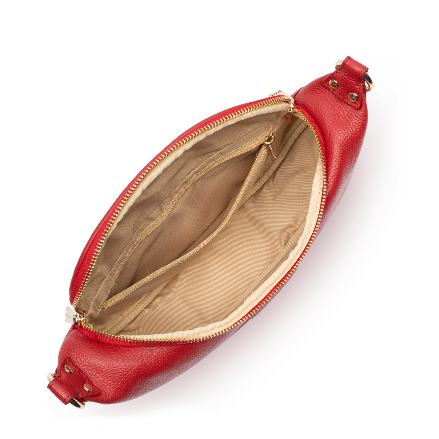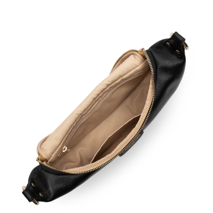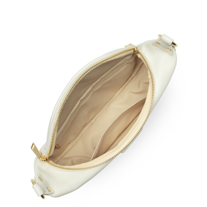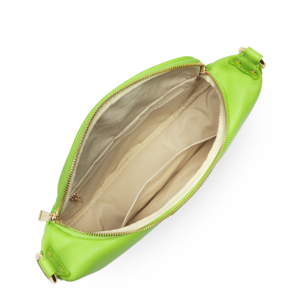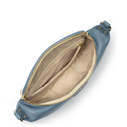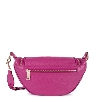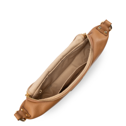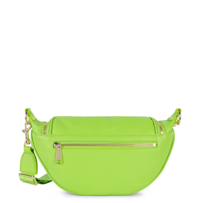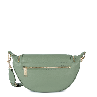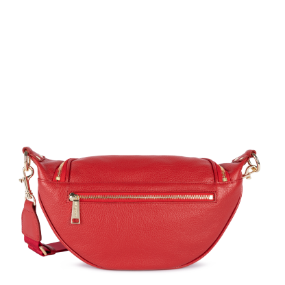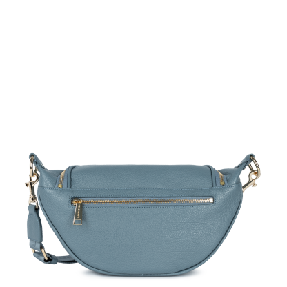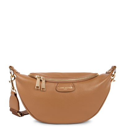 Ce sac banane est confectionné de cuir de vachette grainé. Il comporte une grande poche principale et une poche extérieure zippée. Il se porte à la taille ou de travers.