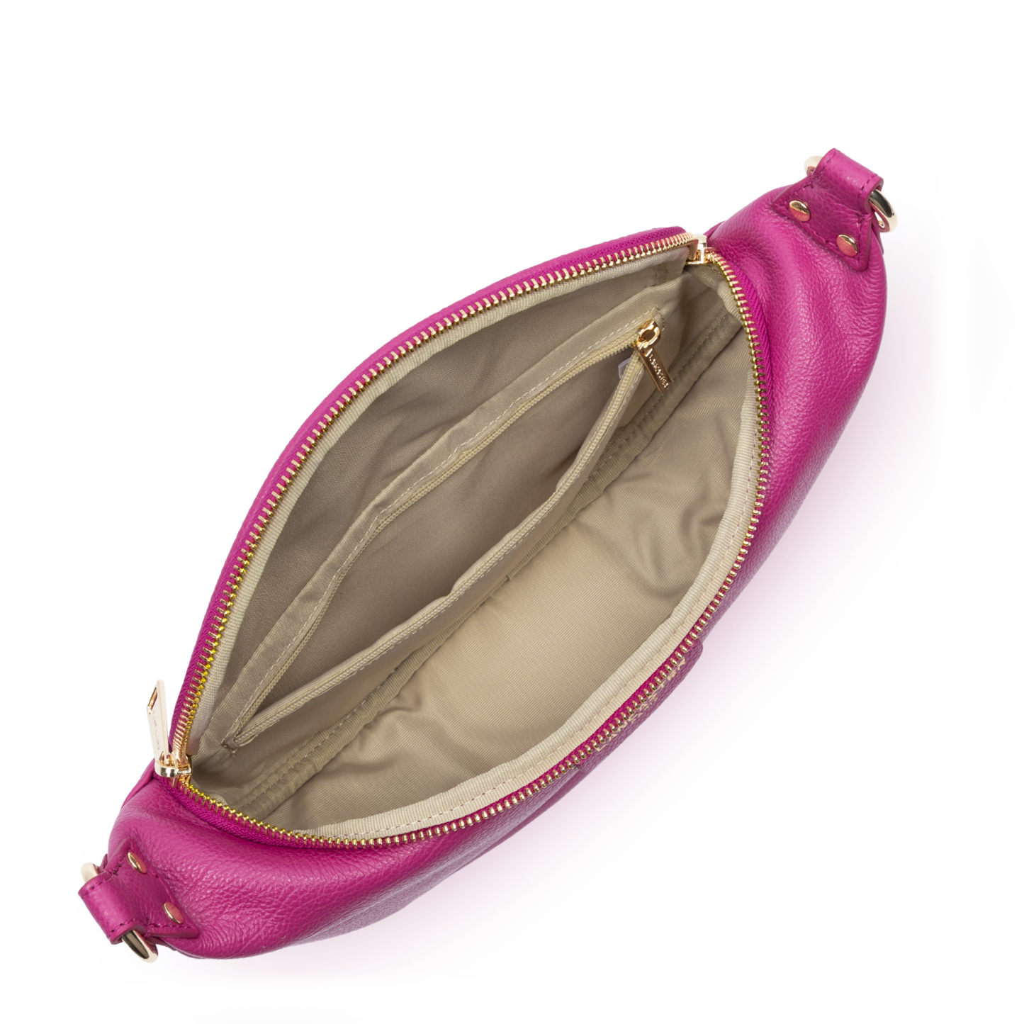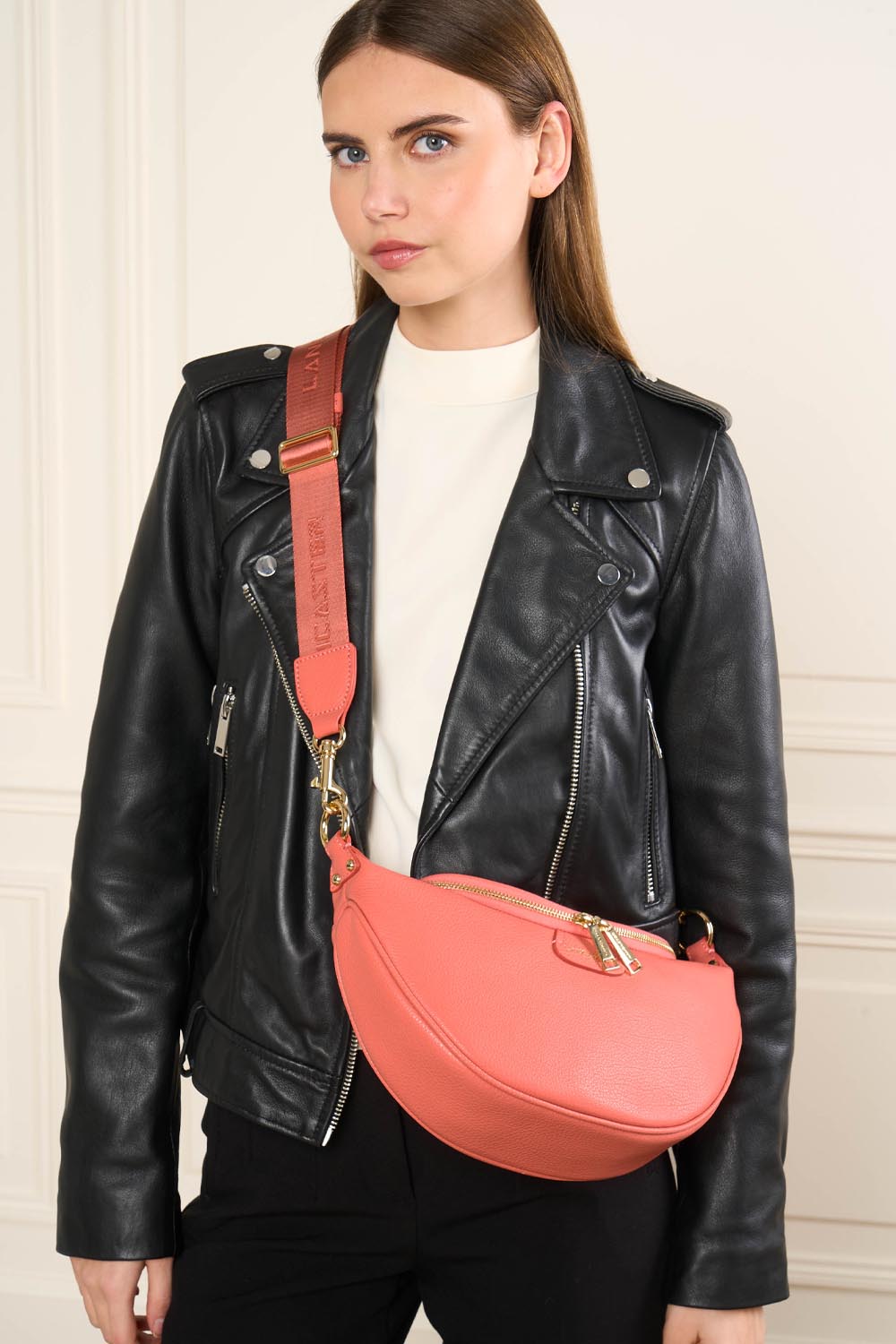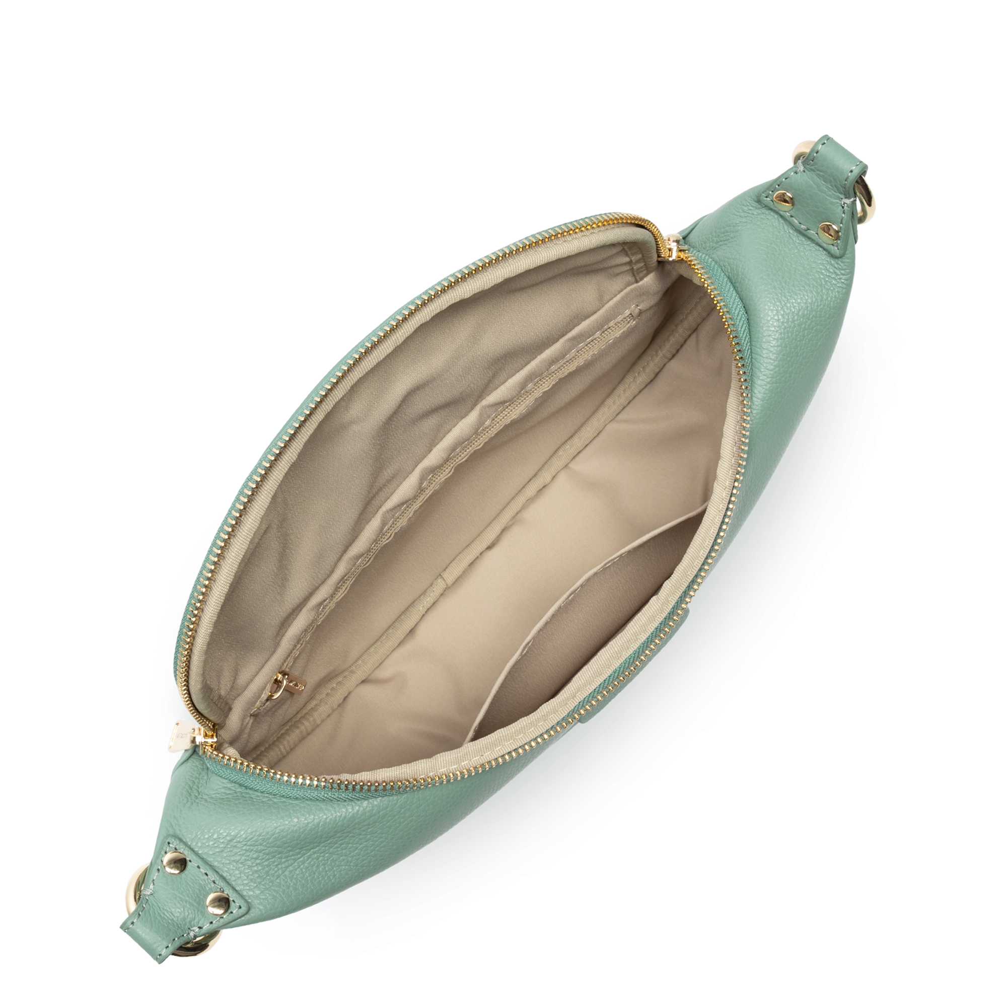 Ce sac banane est confectionné de cuir de vachette grainé. Il comporte une grande poche principale et une poche extérieure zippée. Il se porte à la taille ou de travers.