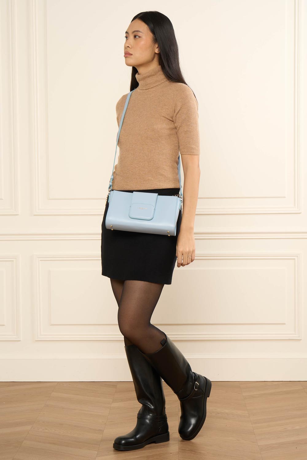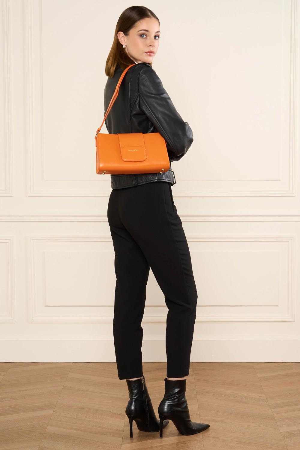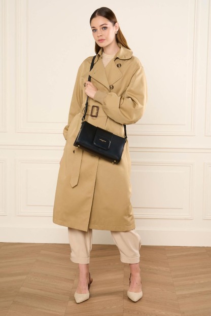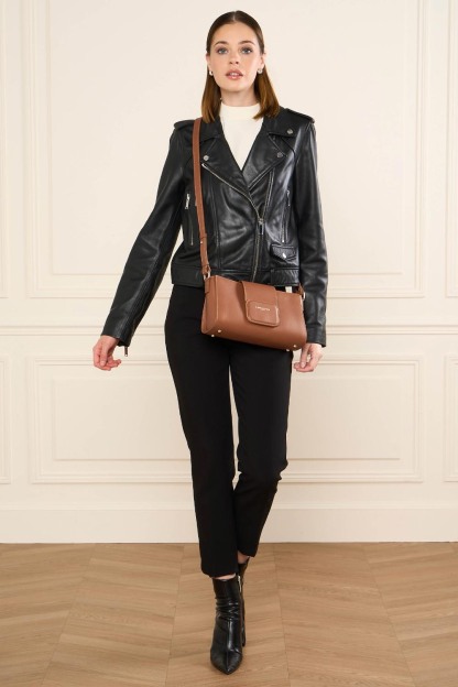 Ce sac trotteur est confectionné de cuir de vachette lisse. Il possède une fermeture à rabat aimanté, une poche extérieure zippée, une poche intérieure, une poche intérieure zippée ainsi qu'un emplacement carte à l'intérieur du rabat. Il se porte à l'épaule ou croisé.