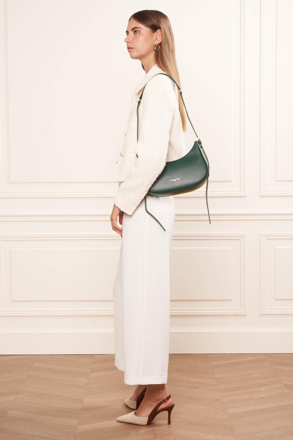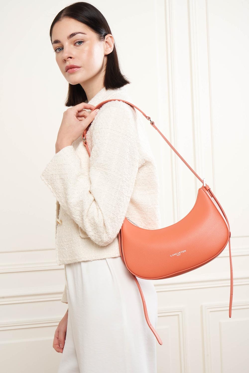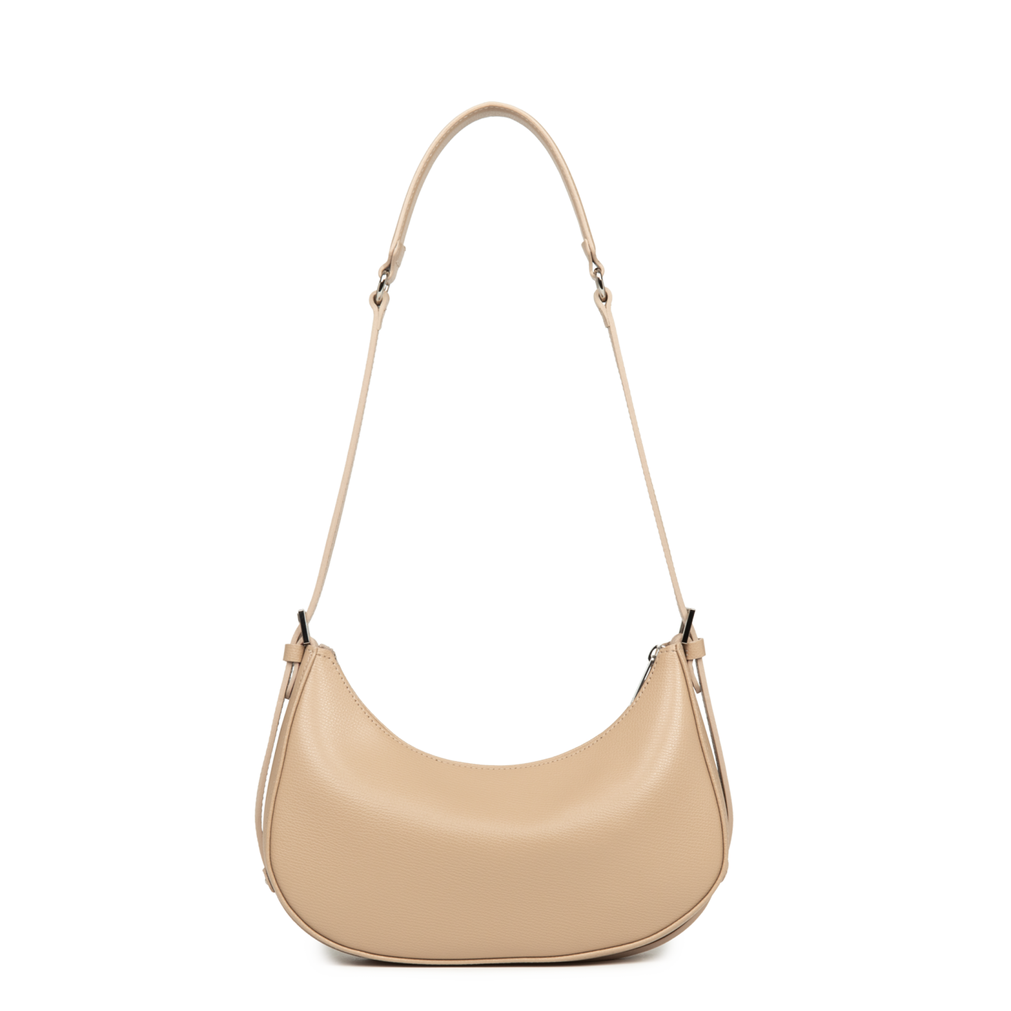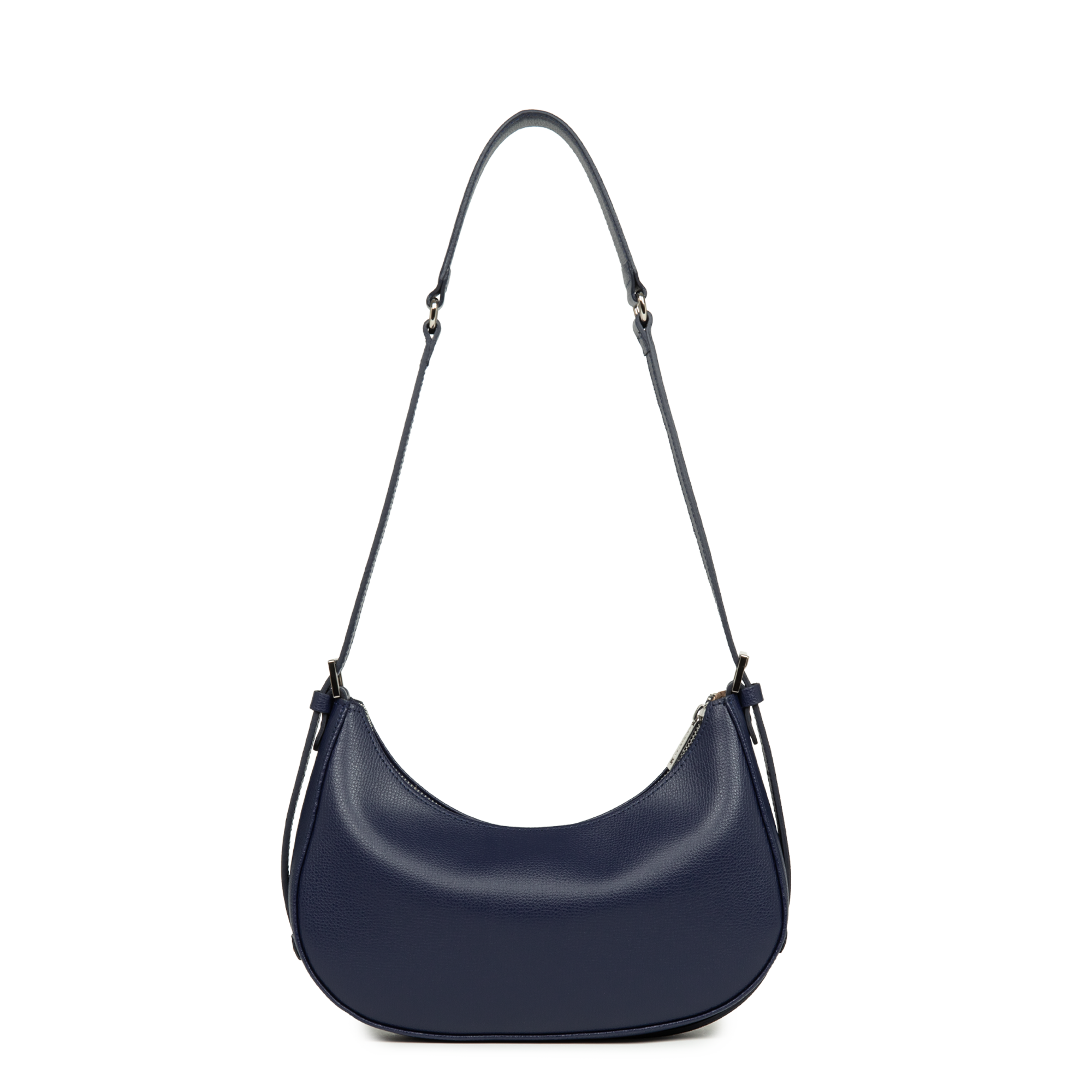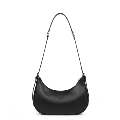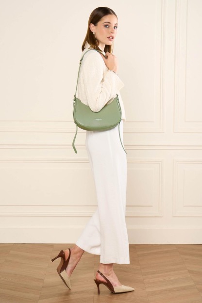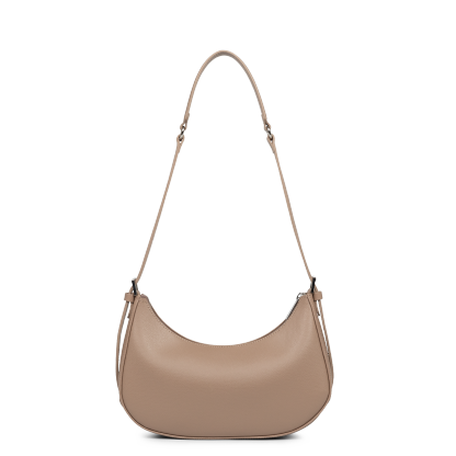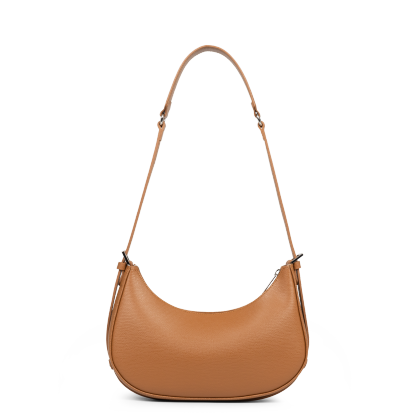 Ce sac demi lune est confectionné de refente de cuir de vachette grainé. Il comporte une grande poche intérieure. Il se porté à l'épaule ou croisé.