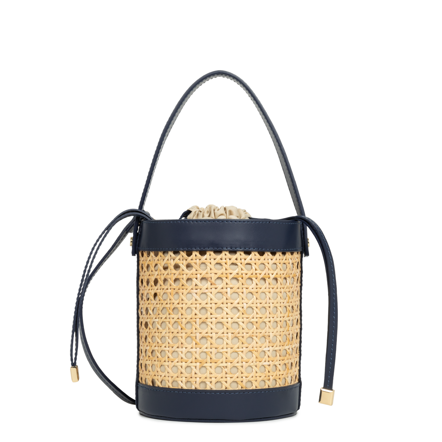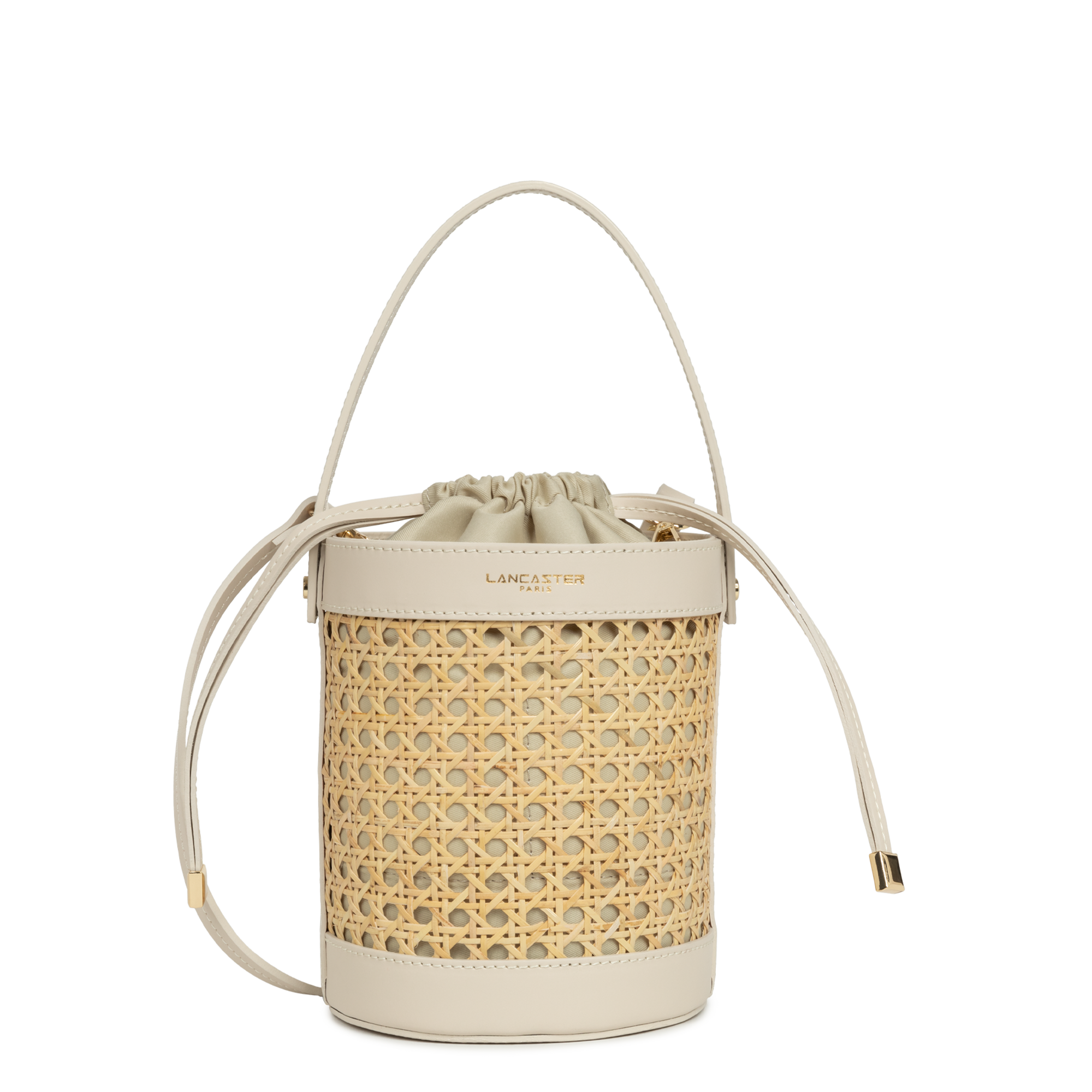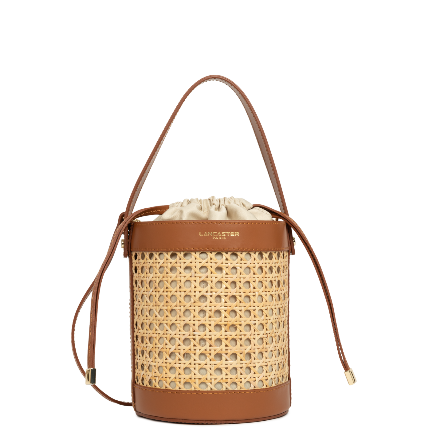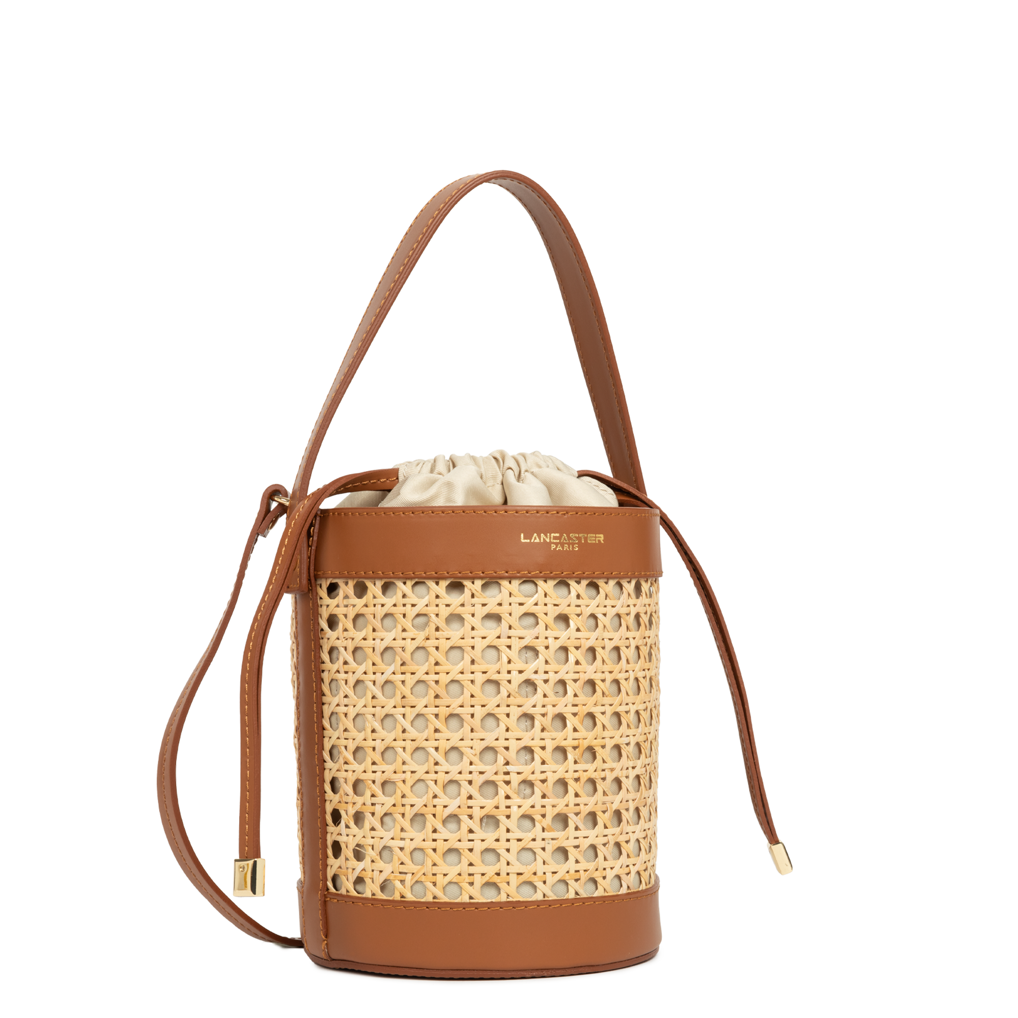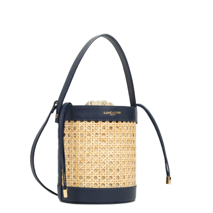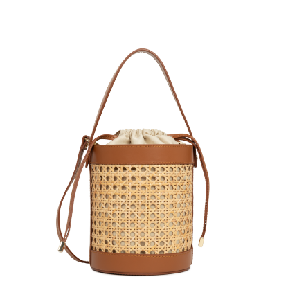 Ce sac seau est confectionné de cannage rotin naturel garni cuir de vachette. Il comporte une grande poche principale ainsi qu'une poche intérieure zippée. Il se porte à la main, croisé ou à l'épaule.