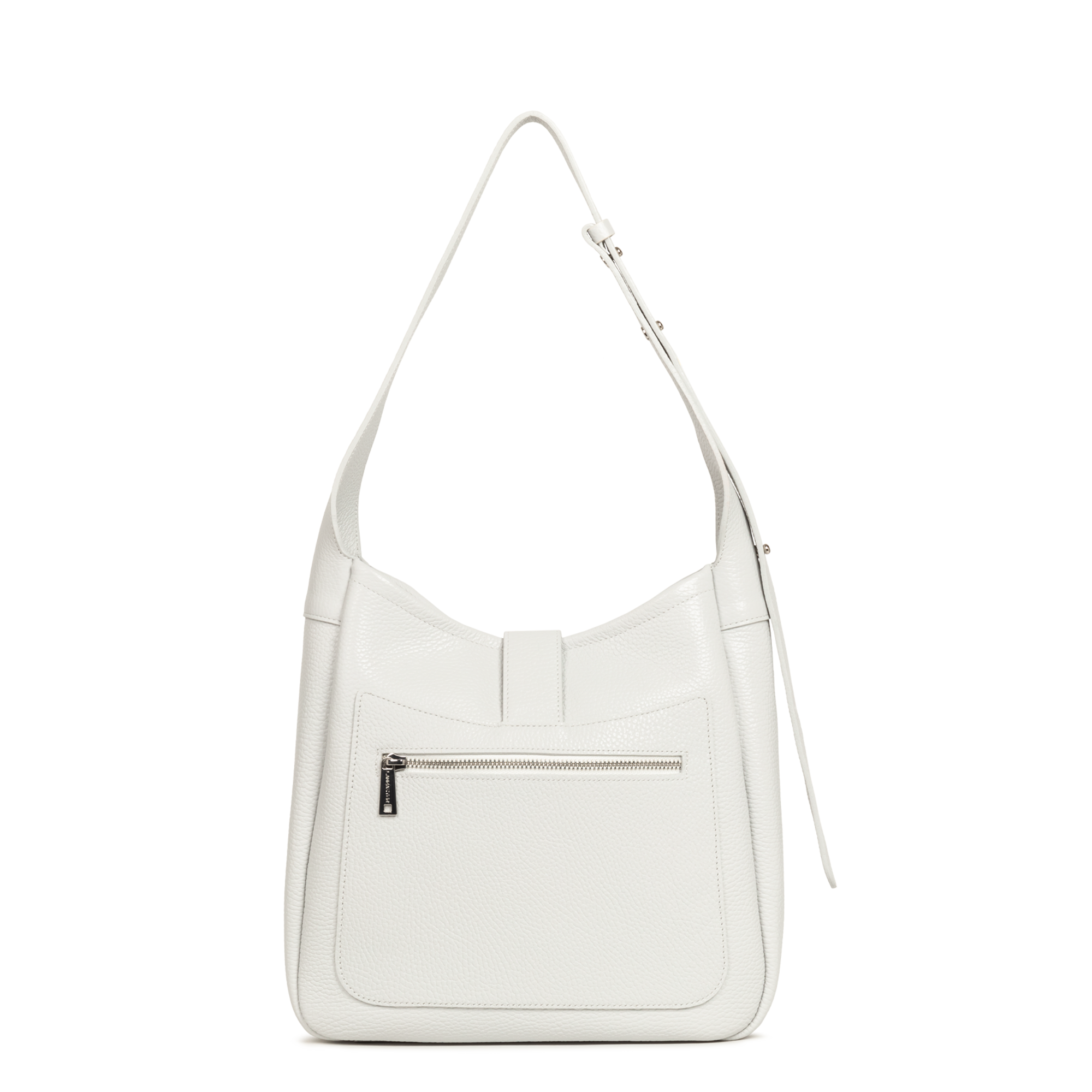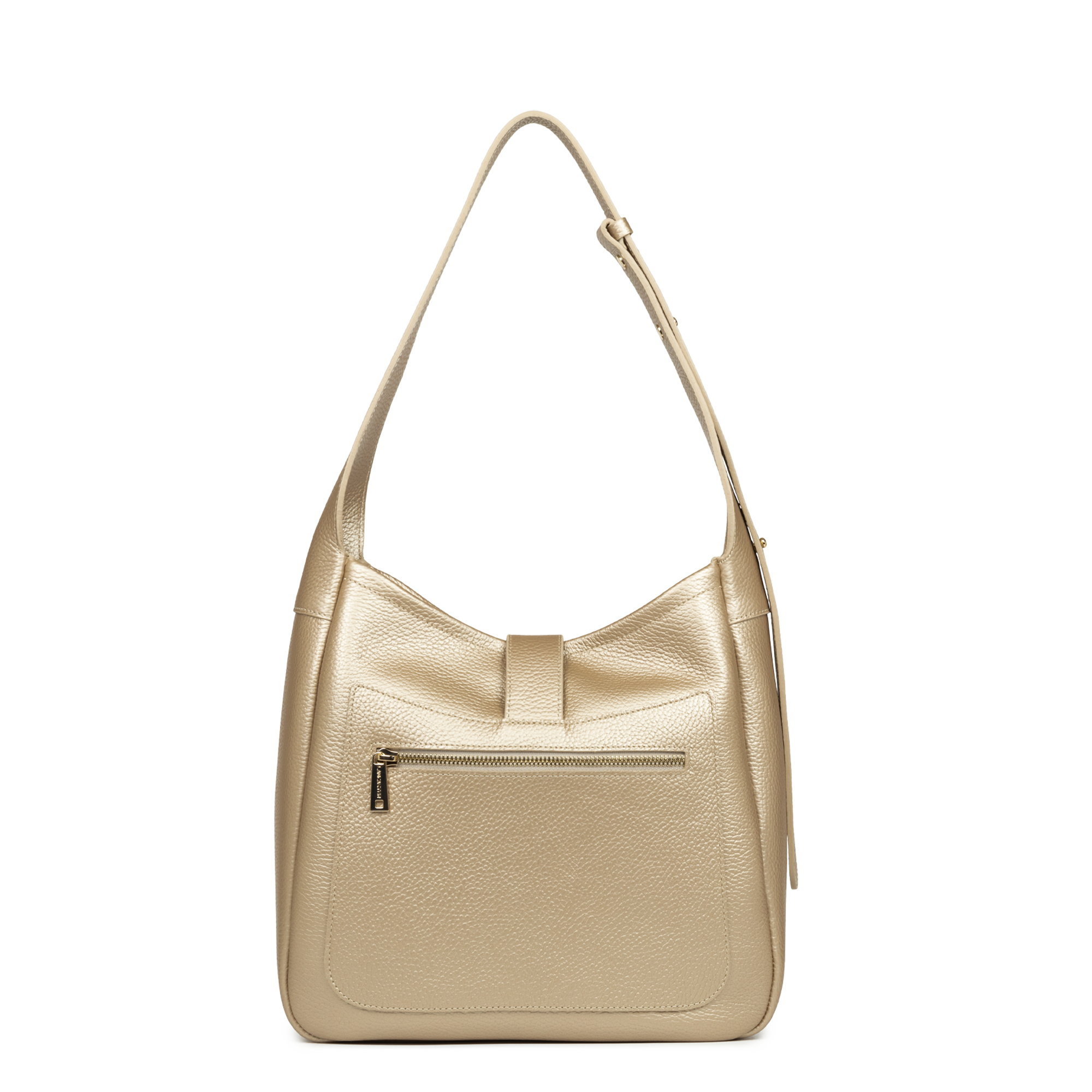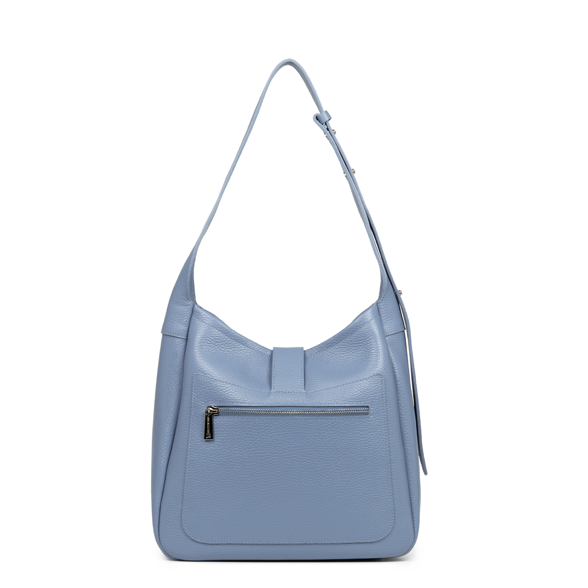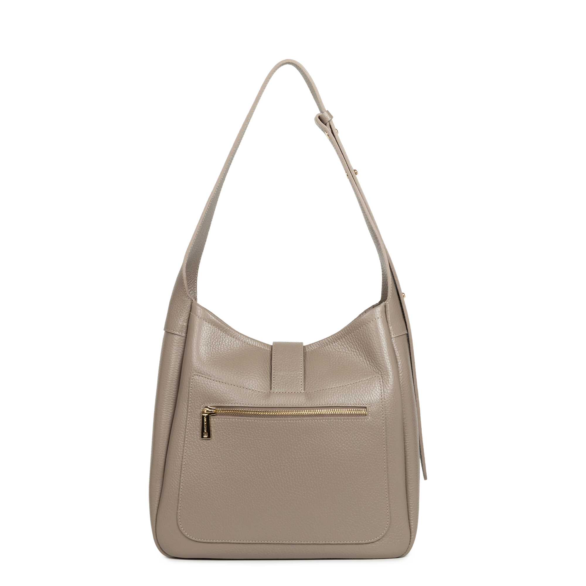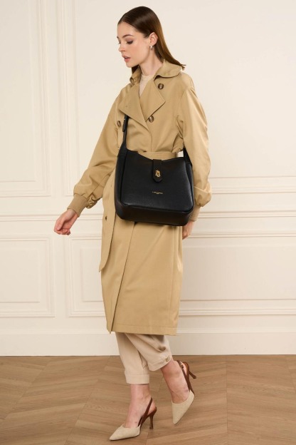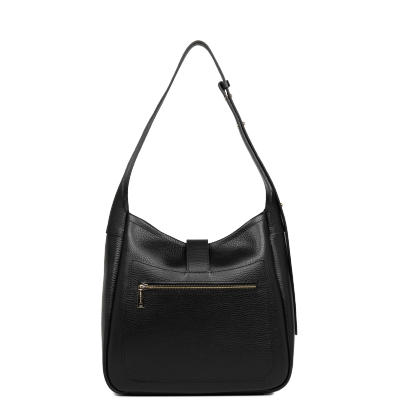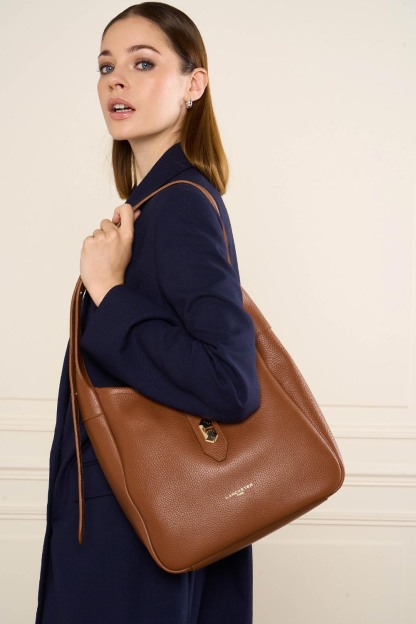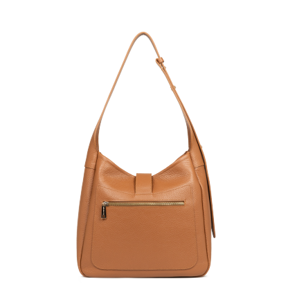 Ce sac seau est confectionné de cuir de vachette grainé. Il comporte une poche extérieure zippée ainsi qu'une poche intérieure simple principale. Il se porte à l'épaule ou croisé.