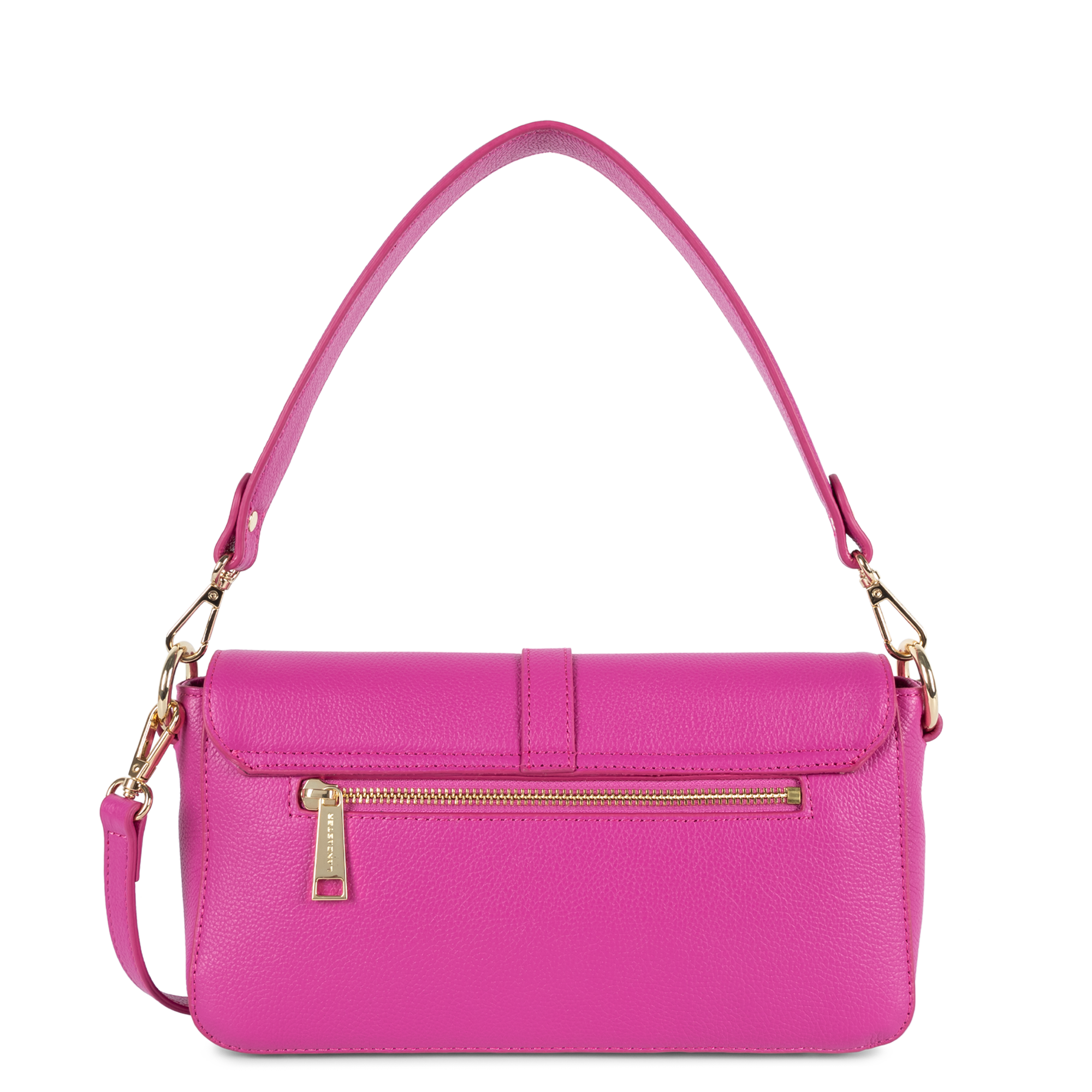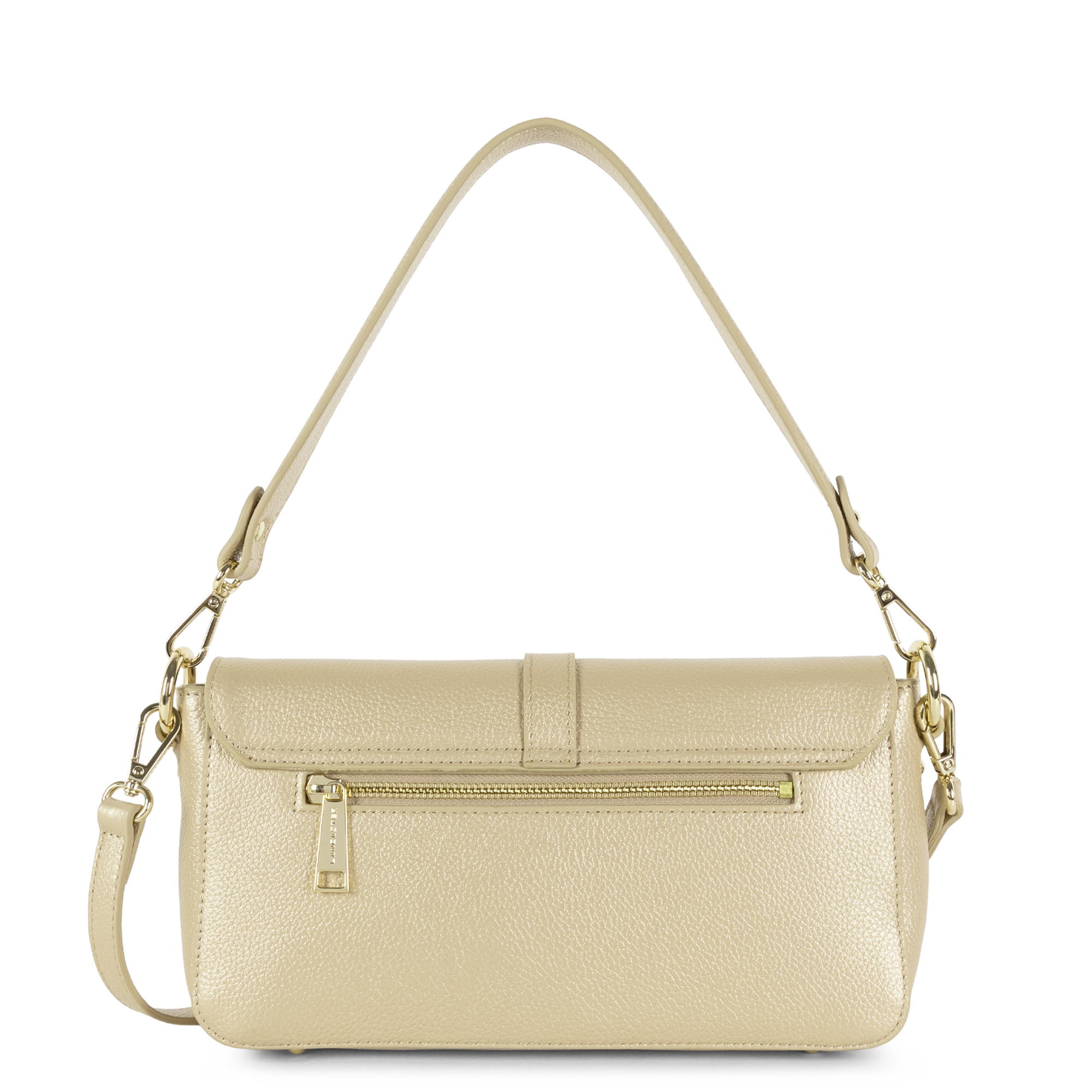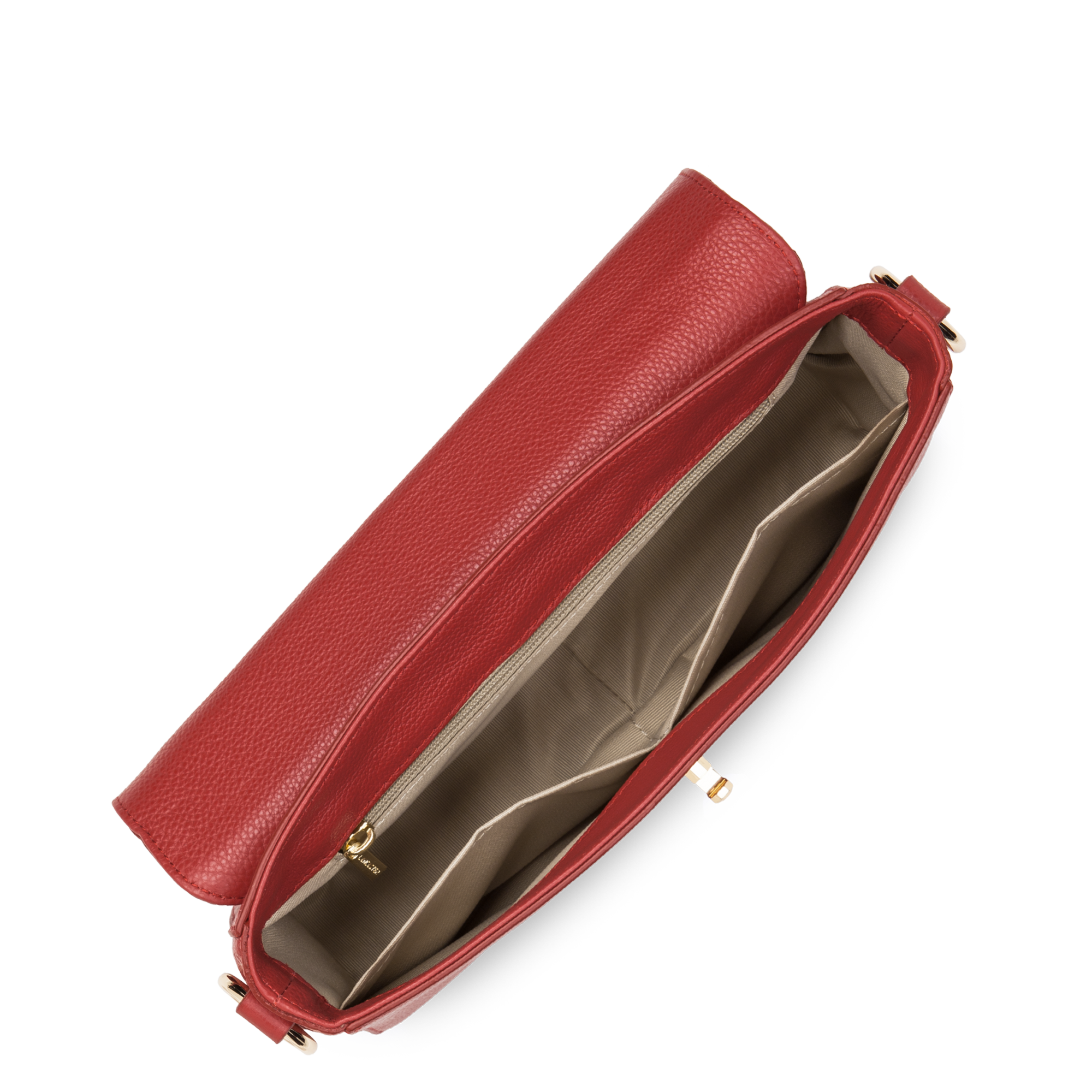Poche arrière zippée, poche intérieure zippée, poche intérieure simple, emplacement téléphone.