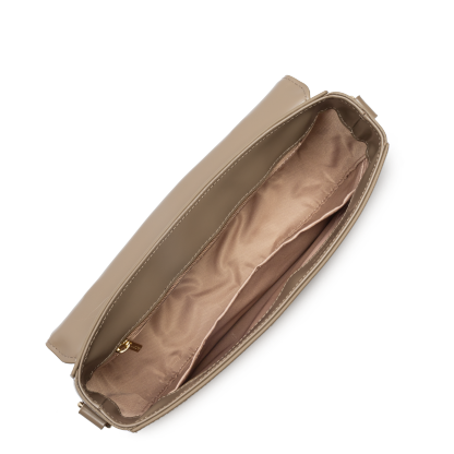 Ce sac trotteur est confectionné de cuir de vachette lisse. Il possède une poche extérieure zippée, une poche intérieure zippée ainsi qu'une poche intérieure simple. Il se porte à la main, à l'épaule ou croisé.