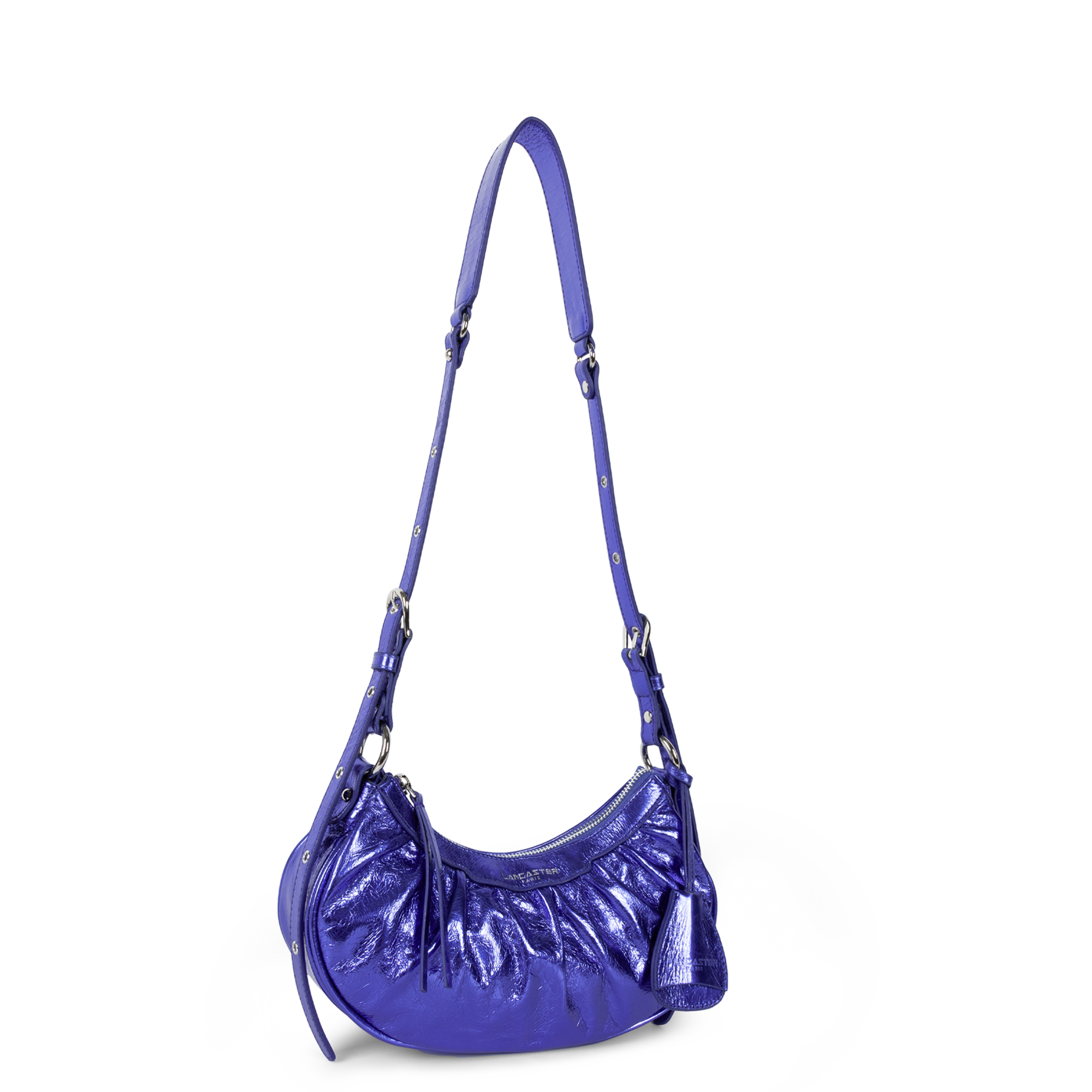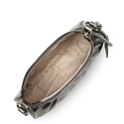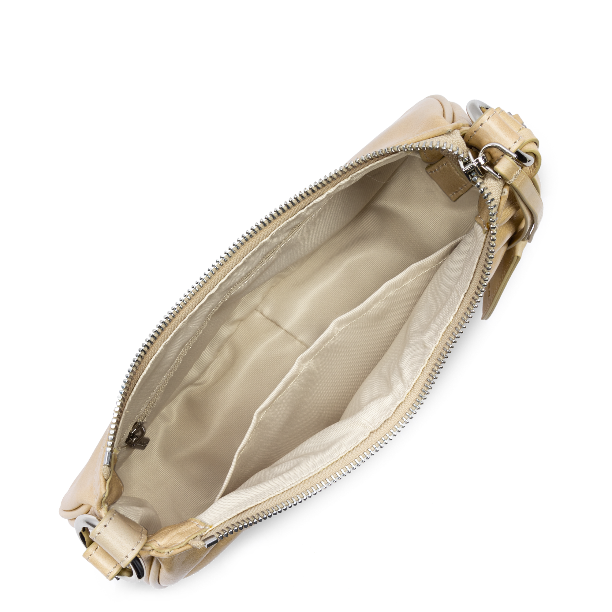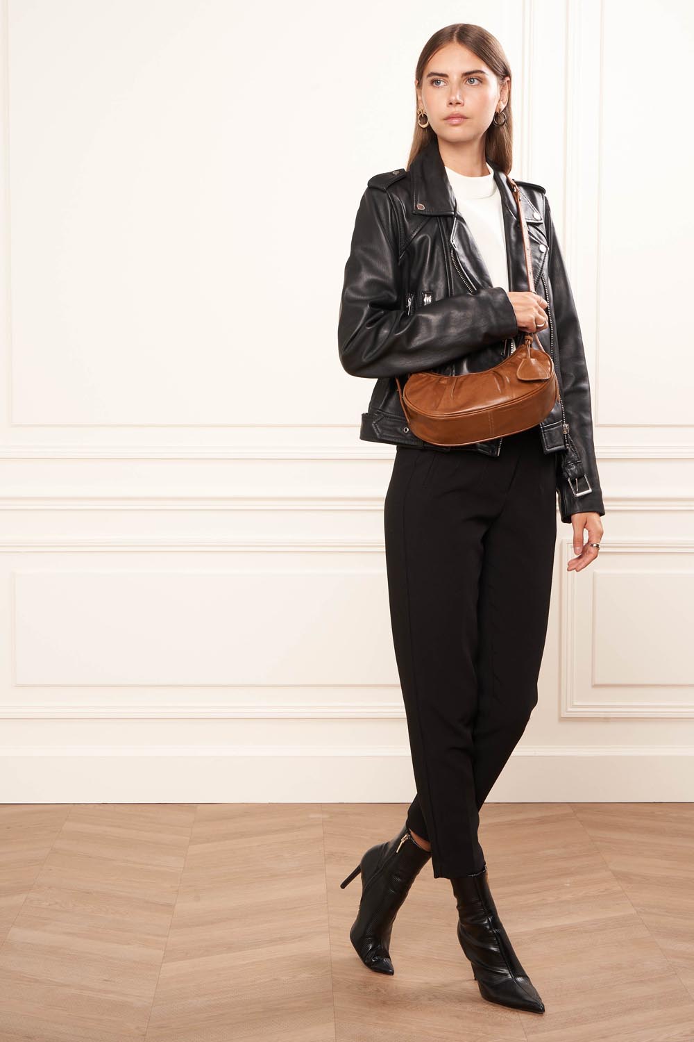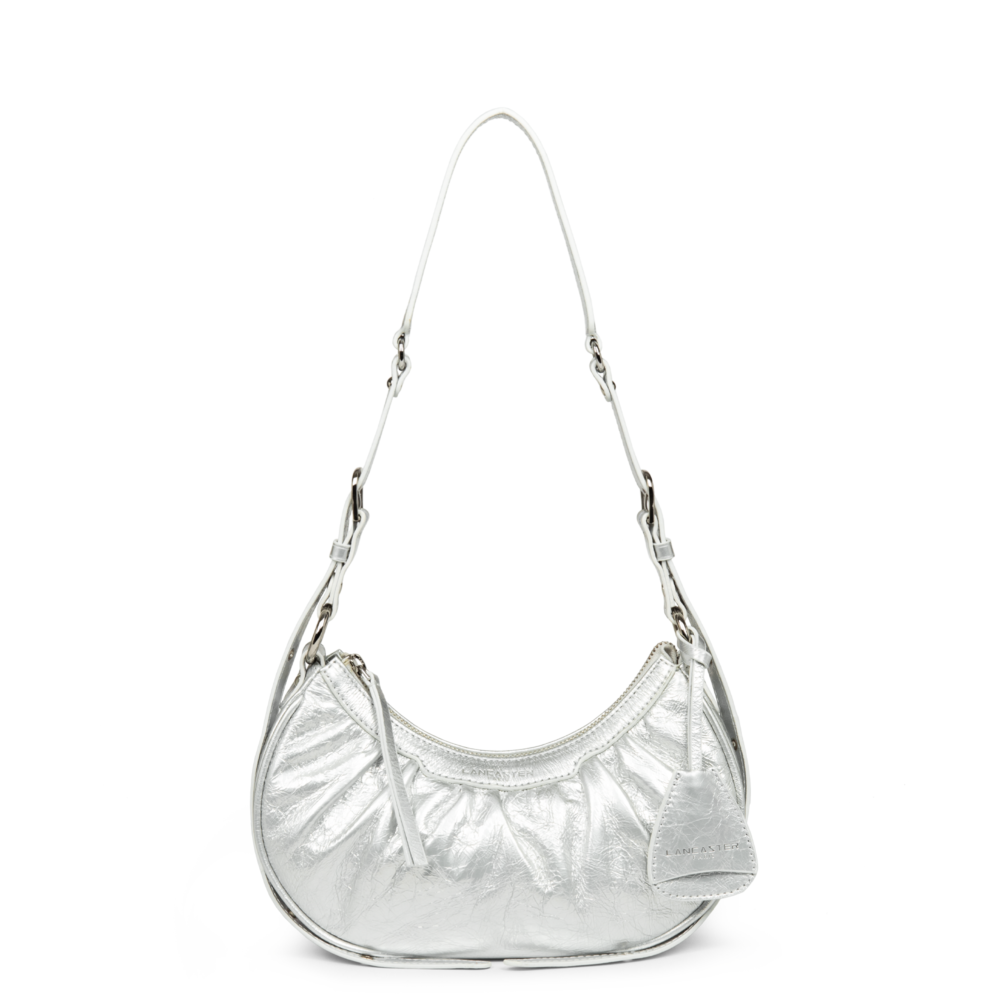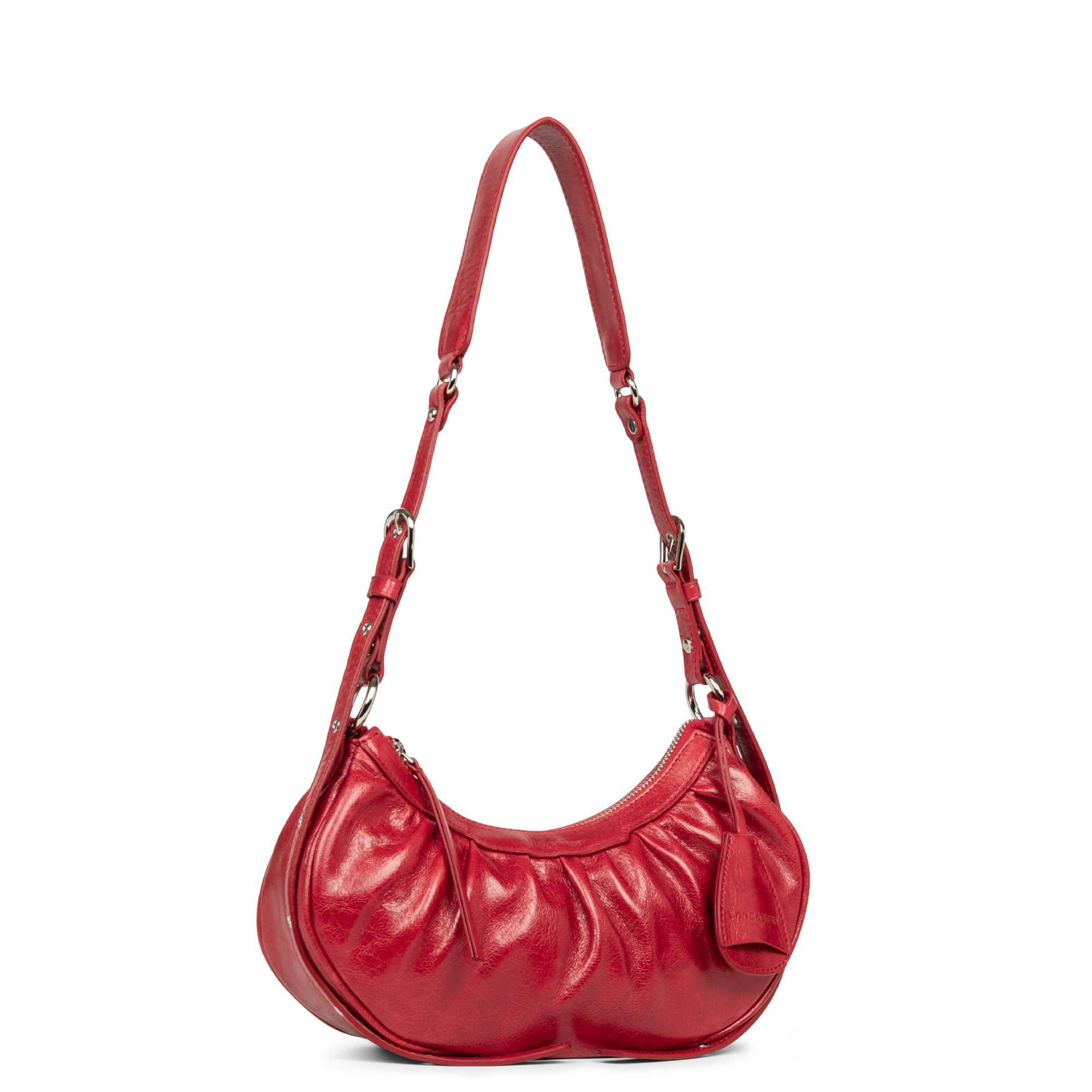 Ce petit sac demi lune est confectionné de cuir de vachette aspect vieilli. Il comporte une grande poche principale. Il se porte à l'épaule ou croisé.