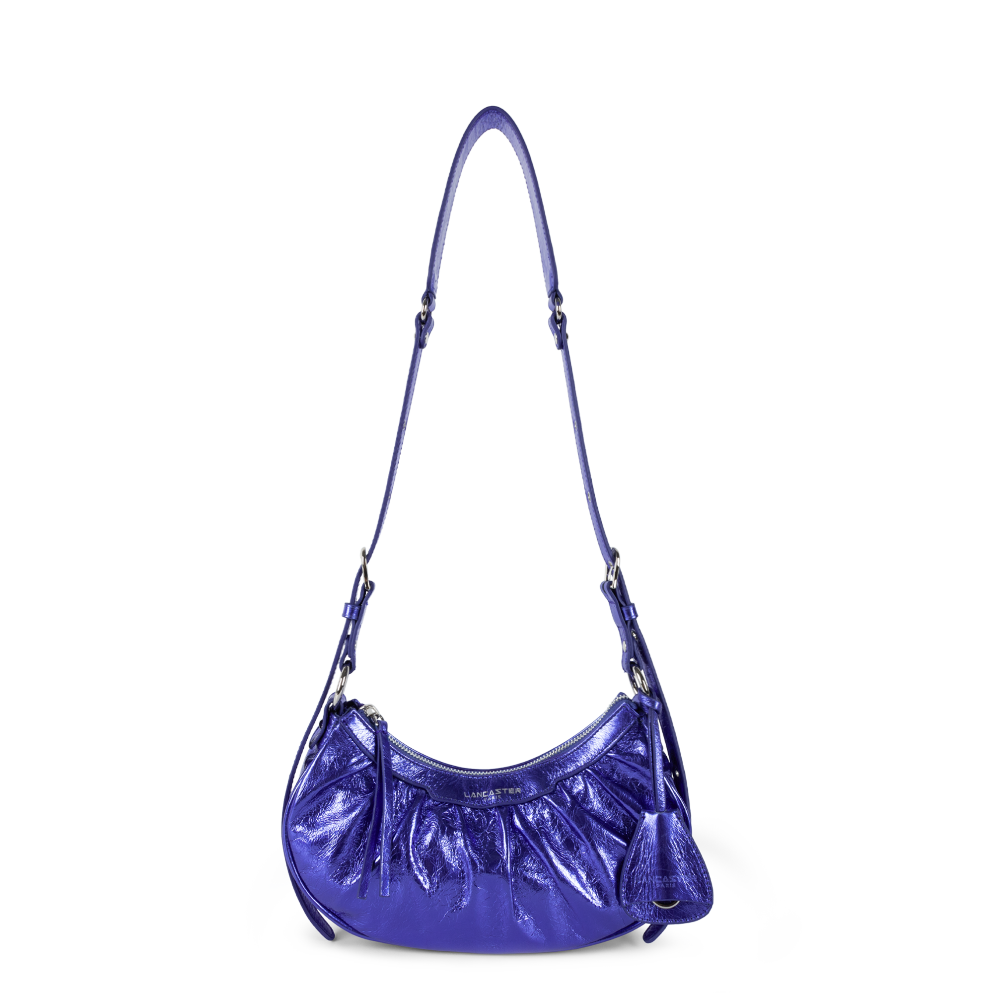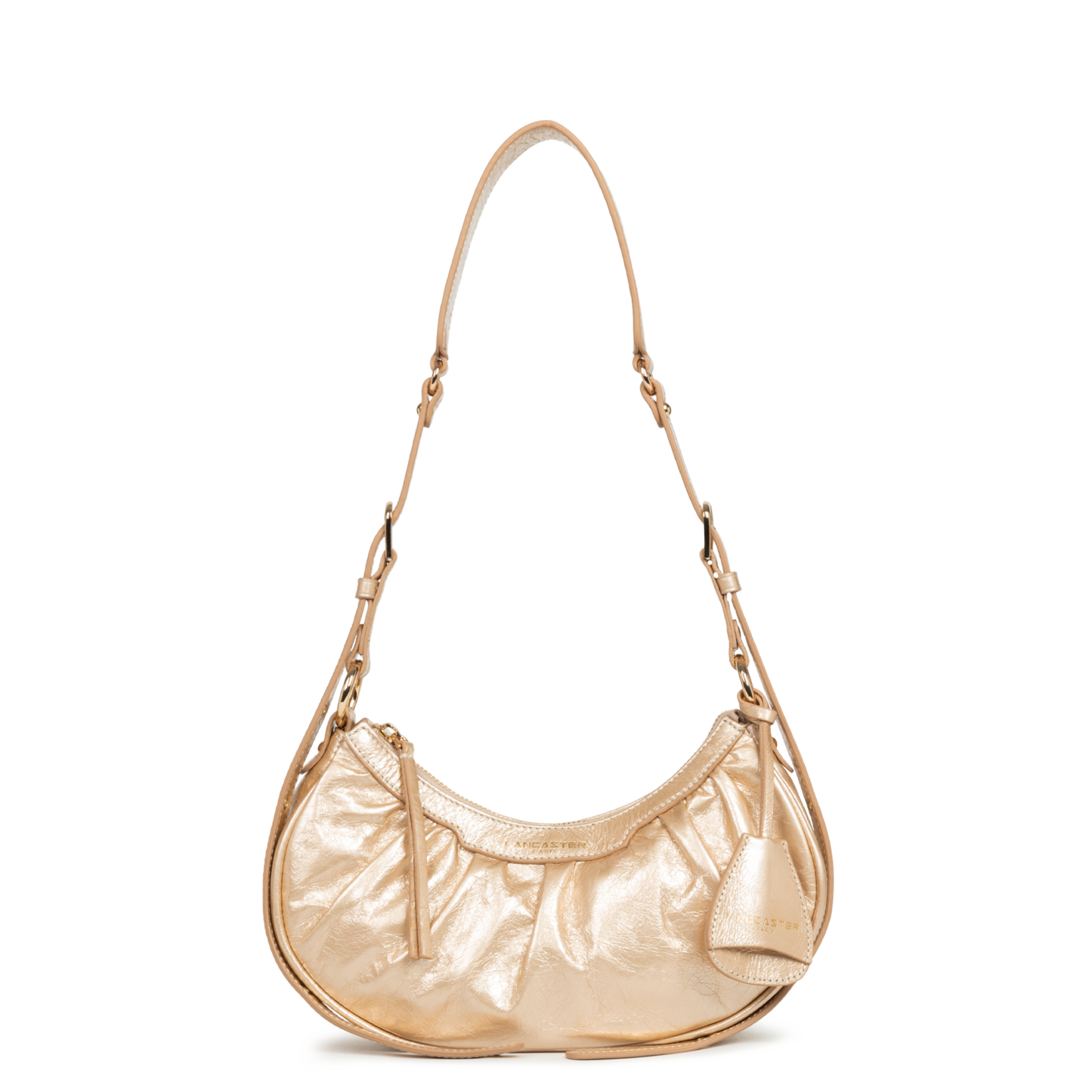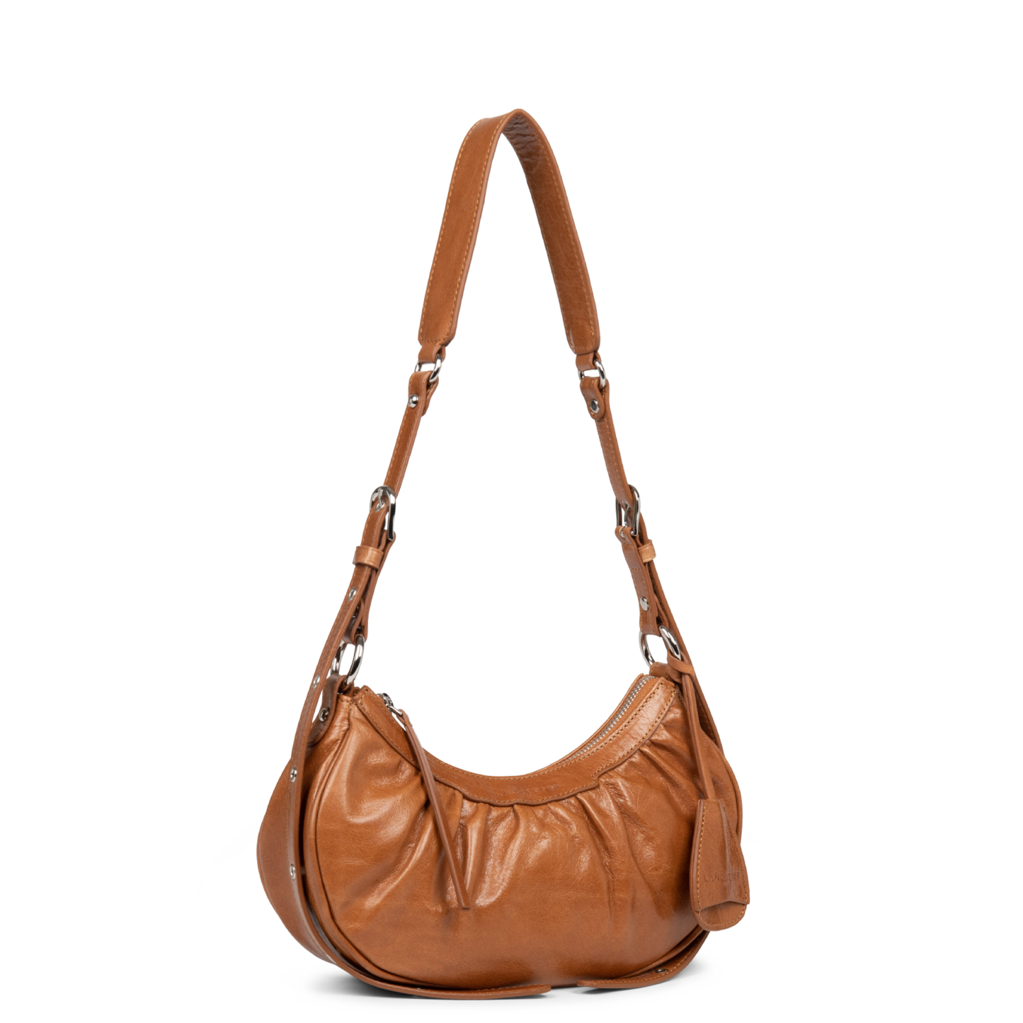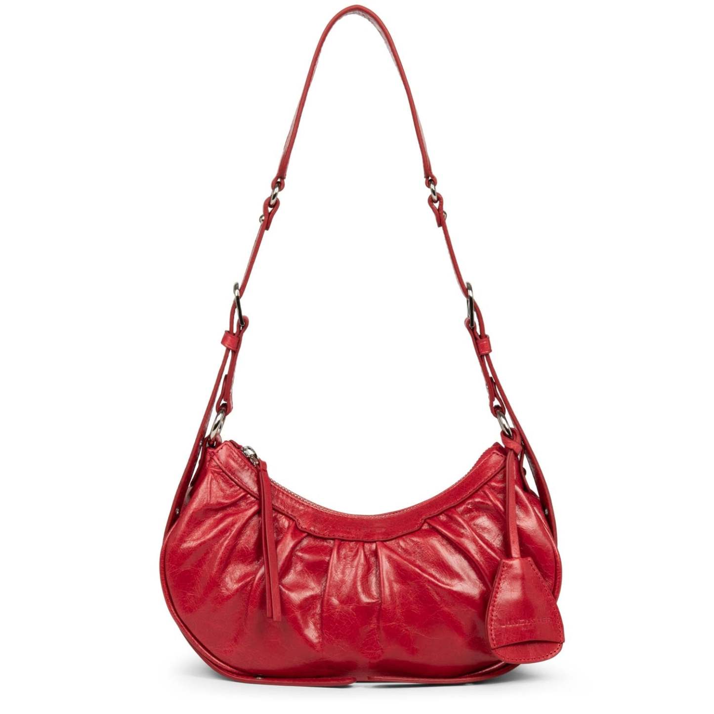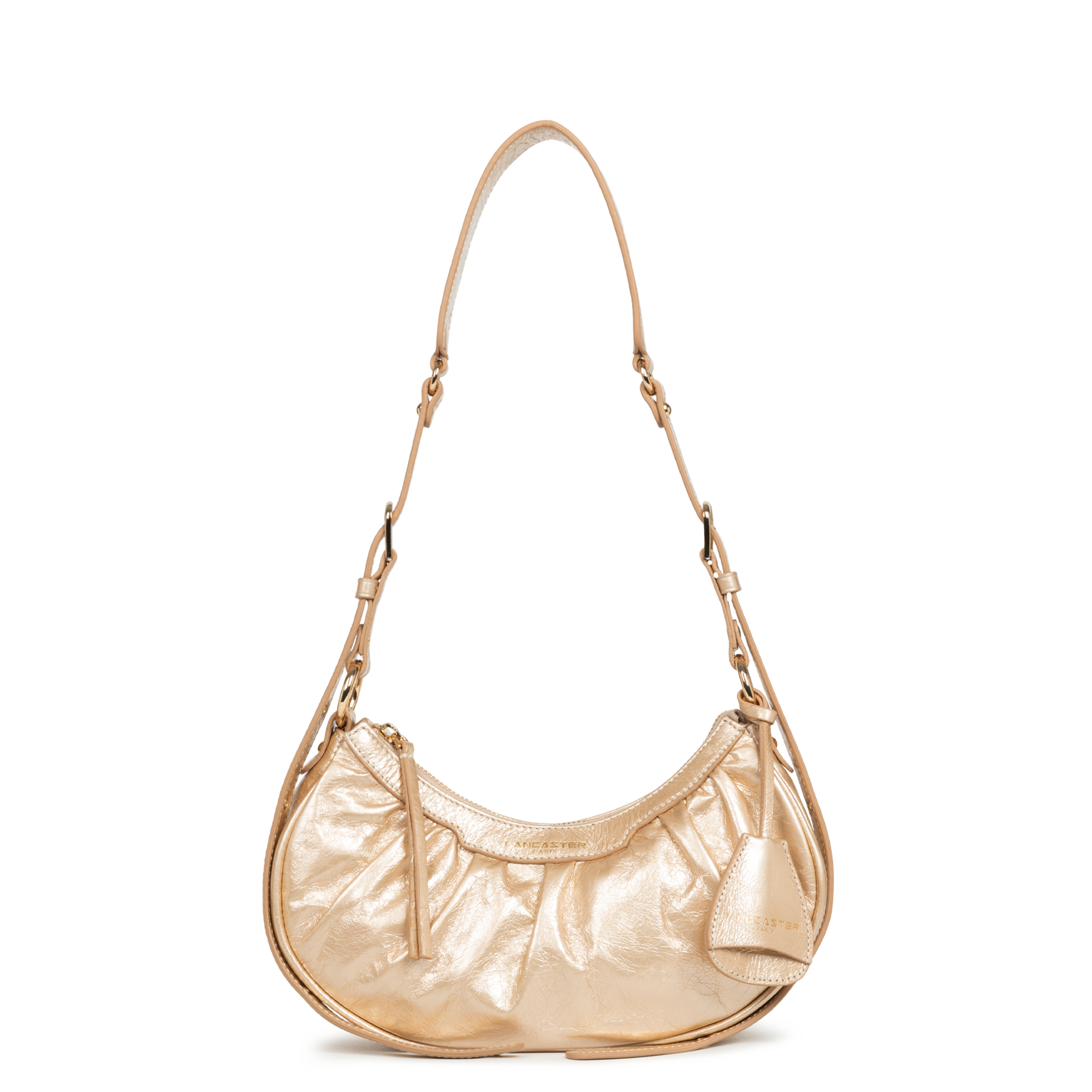 Ce petit sac demi lune est confectionné de cuir de vachette aspect vieilli. Il comporte une grande poche principale. Il se porte à l'épaule ou croisé.
