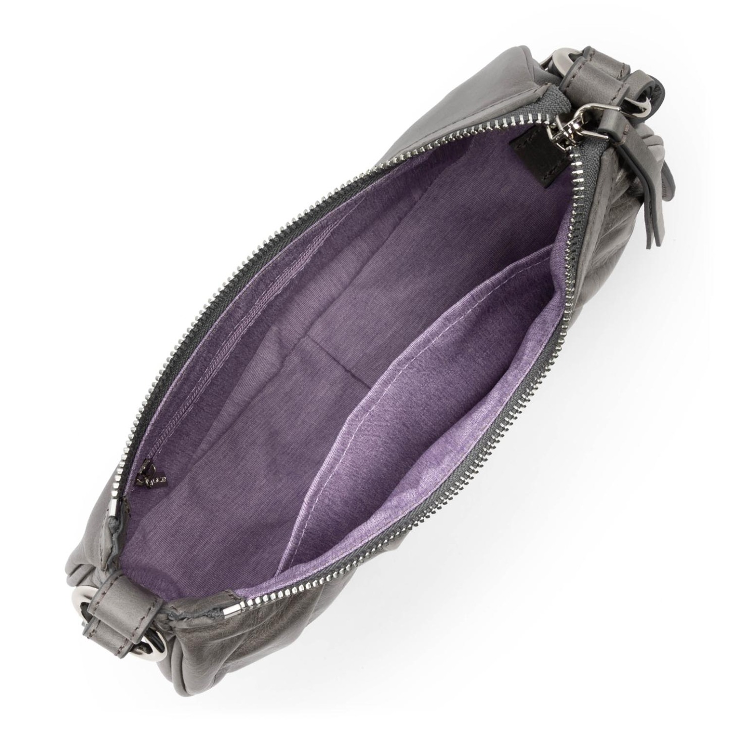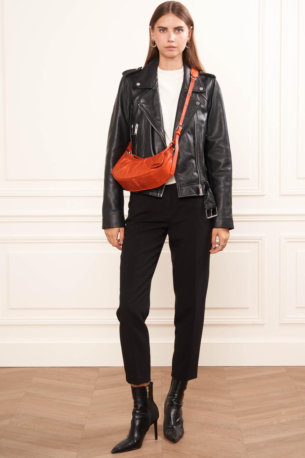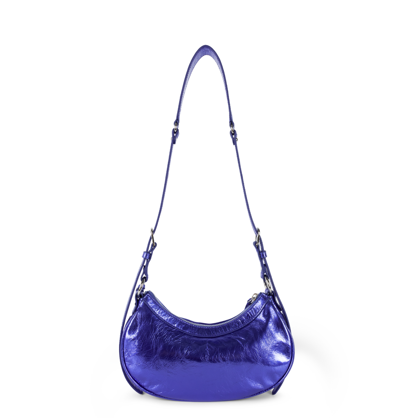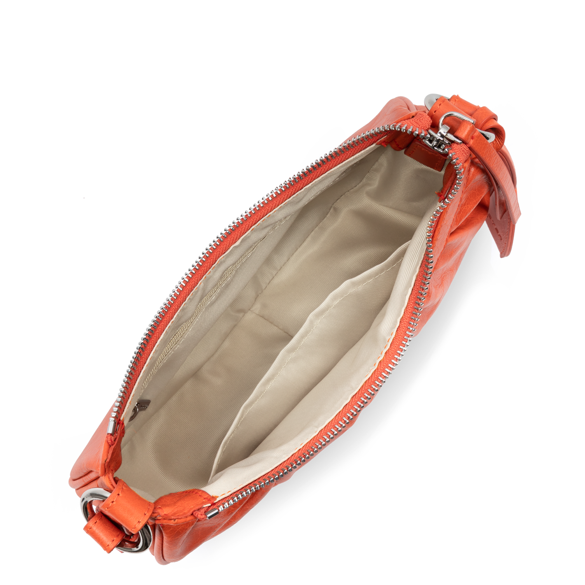 Ce petit sac demi lune est confectionné de cuir de vachette aspect vieilli. Il comporte une grande poche principale. Il se porte à l'épaule ou croisé.