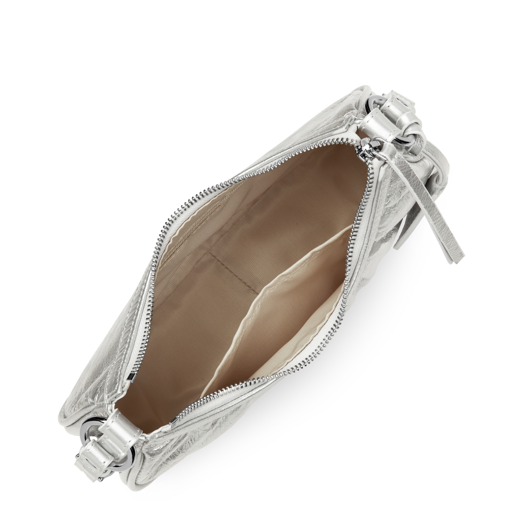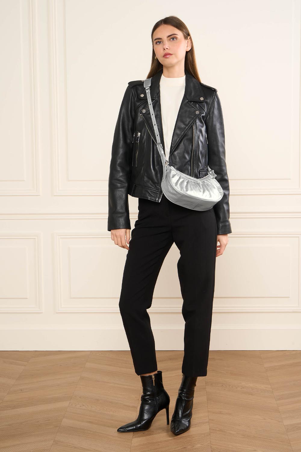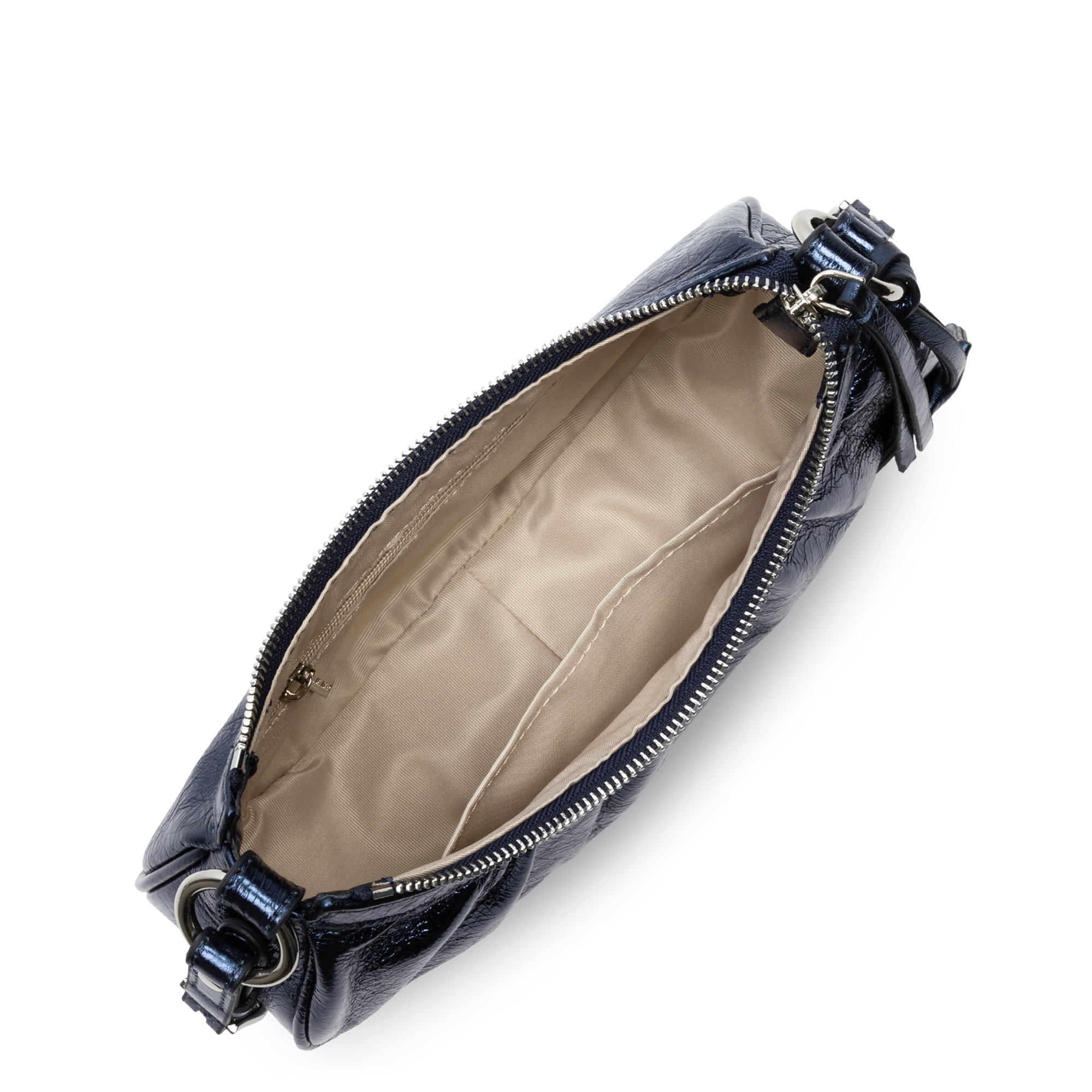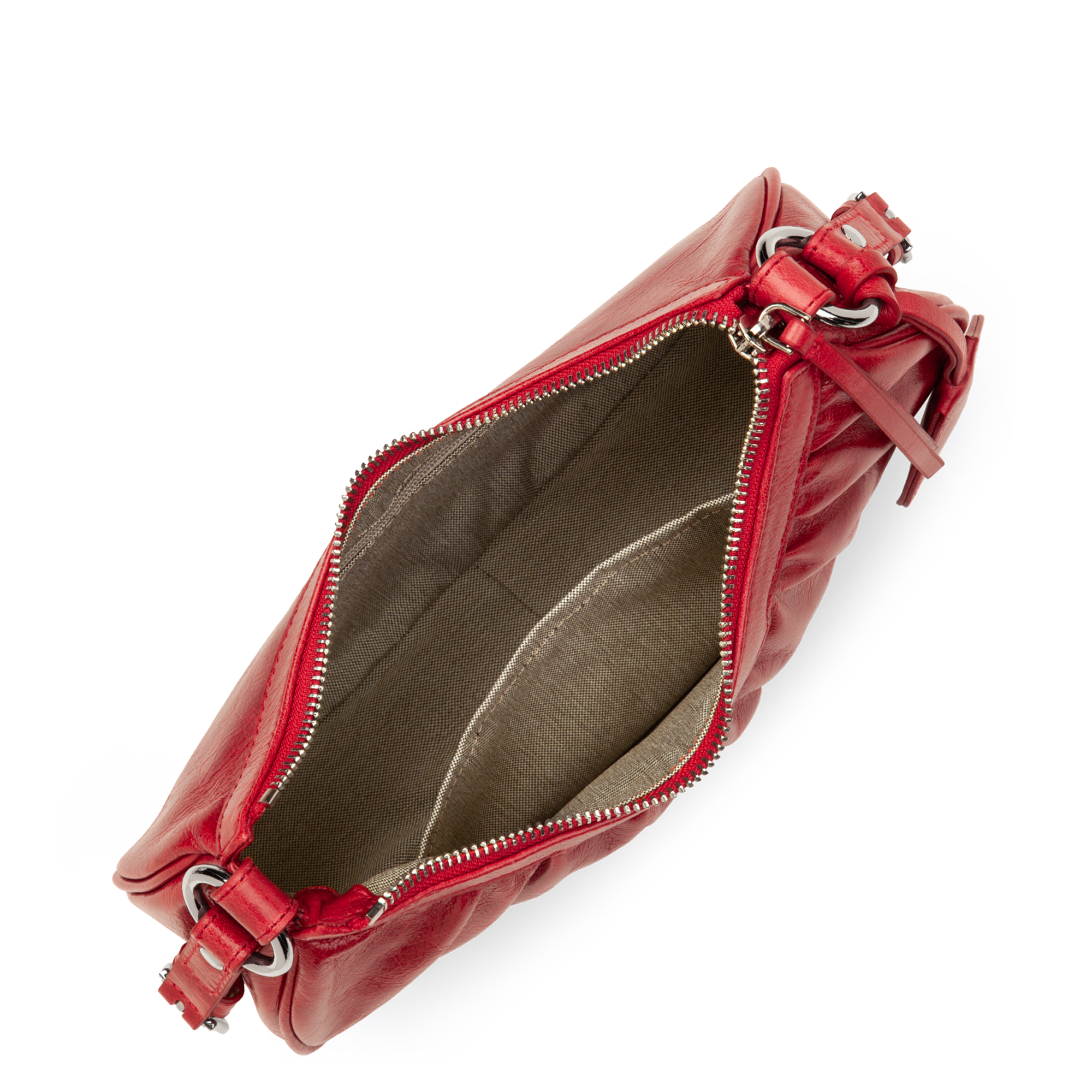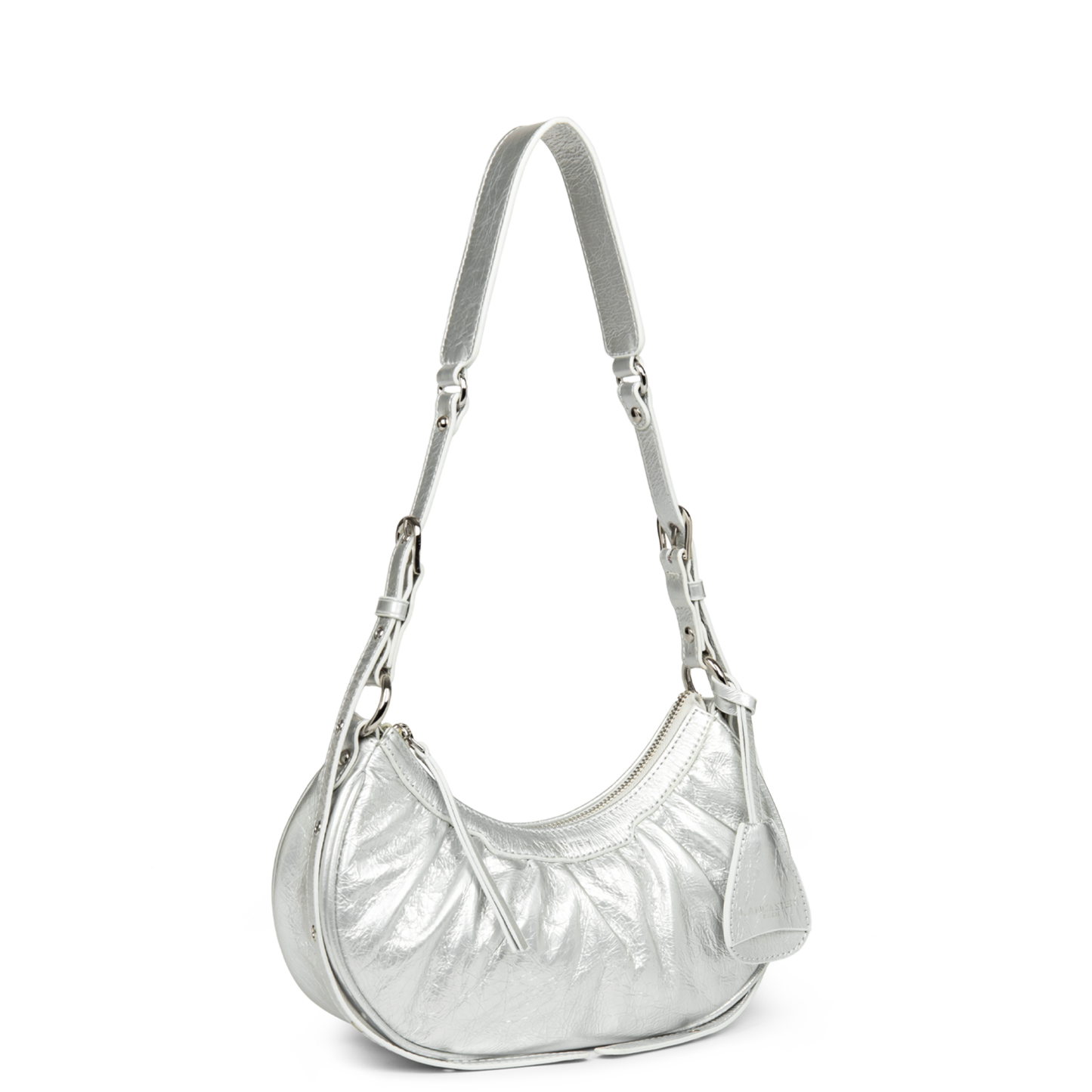 Ce petit sac demi lune est confectionné de cuir de vachette aspect vieilli. Il comporte une grande poche principale. Il se porte à l'épaule ou croisé.