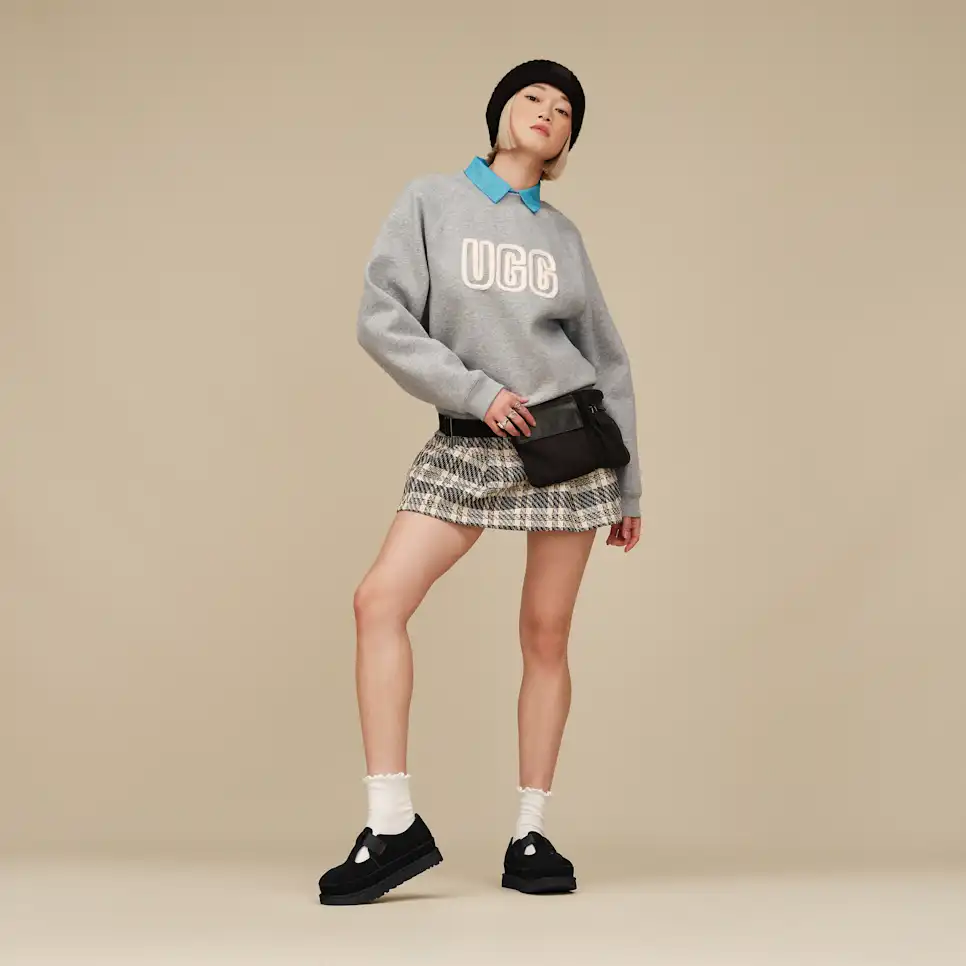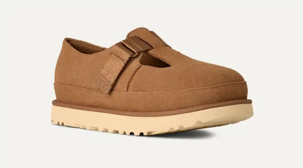 Searching for more ways to wear the Goldenstar? Well, luckily for you, the family is growing. Meet our Goldenstar Mary Jane. This elegant take on the Goldenstar keeps the same bold shape and elevated comfort of the original that you adore, and combines it with a Mary Jane-inspired upper. In true UGG® fashion, we've crafted these with genuine suede and our Twin Seam and Overstitched Binding.