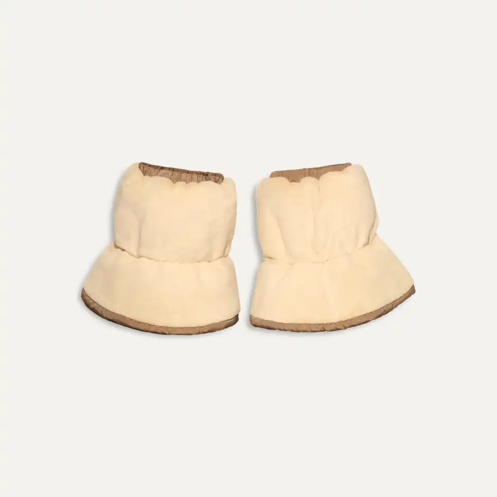 Turn down the cold and turn up the cozy with the Plushwarmer. Featuring a puffed-up textile upper and cuddly-soft faux fur lining, it can be reversed for a textured exterior.