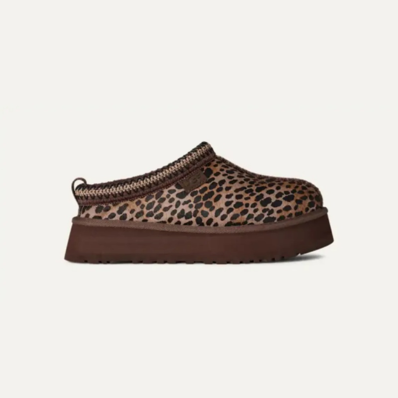 - Imprimé à pois, empeigne en poils de veau, UGGbraid en fibres de polyester 100 % recyclé, tirant arrière