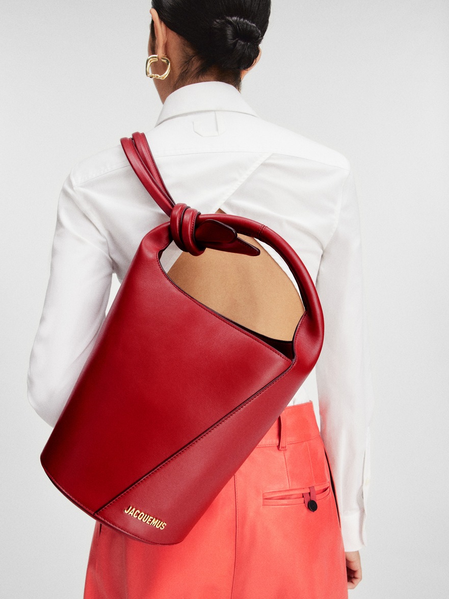 |||LES SCULPTURESMini knotted bucket bag- Smooth leather bucket bag