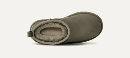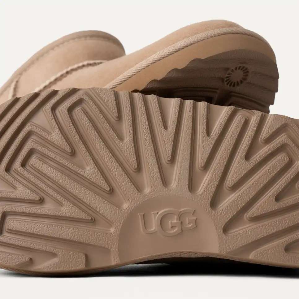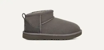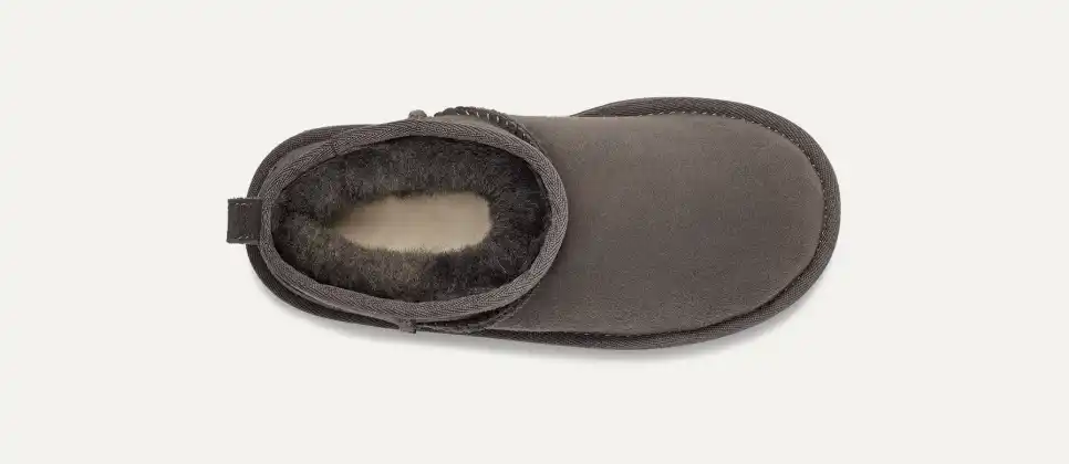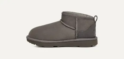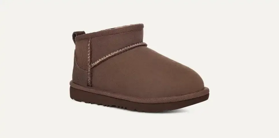 Our Classic Ultra Mini features a low shaft height, adding easy on-off and enhanced versatility. Pre-treated to keep it looking better for longer, this Classic features everything kids love about the original: signature sheepskin lining, an ultra-soft UGGplush? insole, and a flexible, ultra-lightweight sole made for all-day play. Pair with our matching adult-sized boot for cute mini-me photo ops.