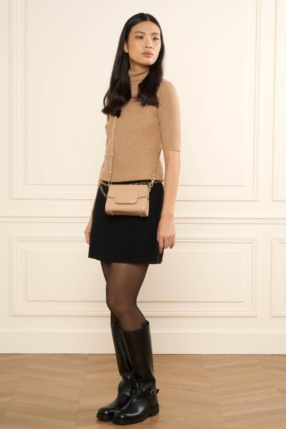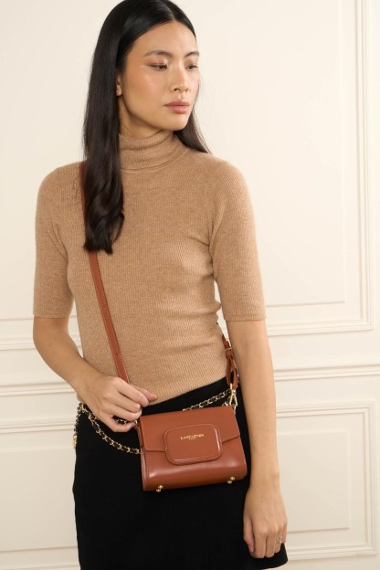 Ce mini sac trotteur est confectionné de cuir de vachette lisse. Il possède une poche arrière extérieure zippée, un emplacement frontale pour carte, une poche intérieure zippée ainsi qu'une poche intérieure simple. Il se porte à la main, à l'épaule ou croisé.