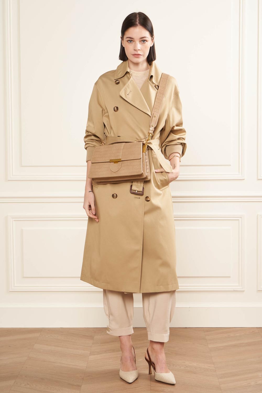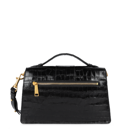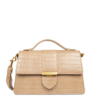 Ce grand sac à main est confectionné de cuir de vachette grainé. Il possède deux grandes poches intérieures séparées par un compartiment zippé. Il se porte à la main, à l'épaule ou croisé.