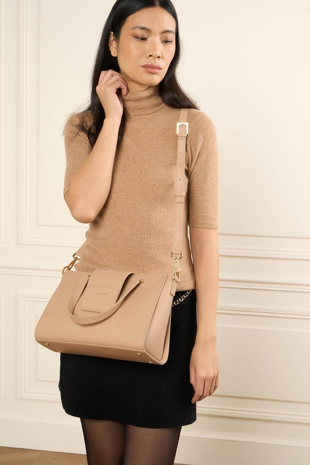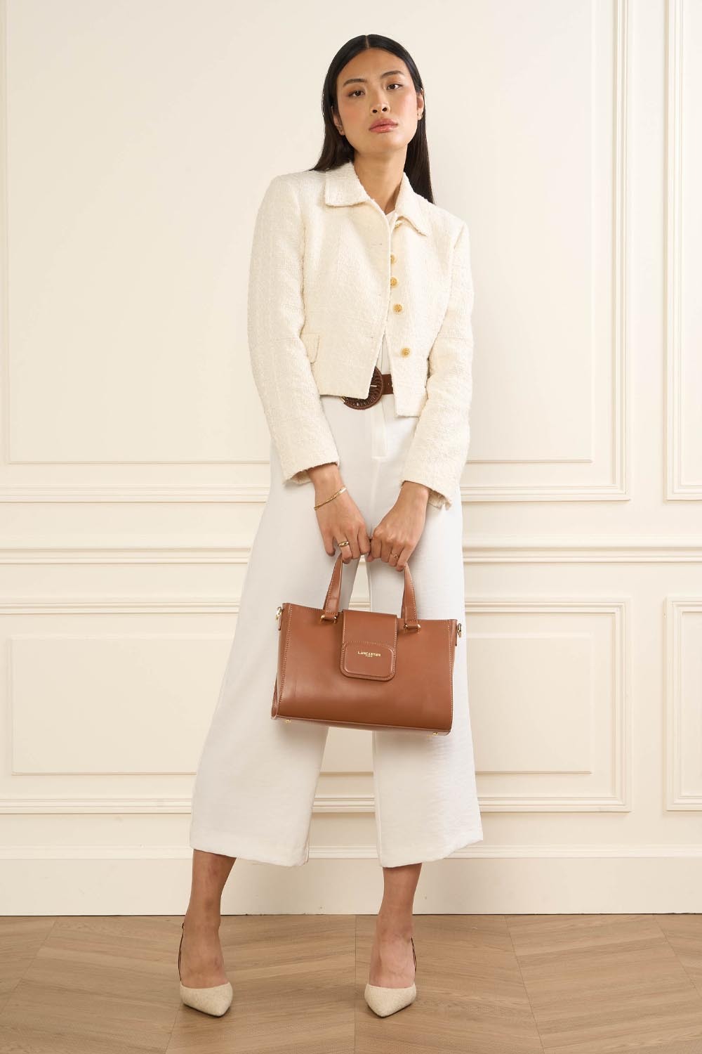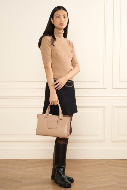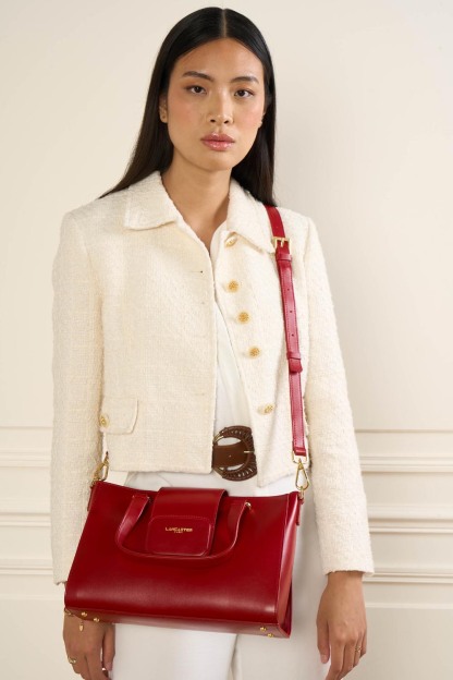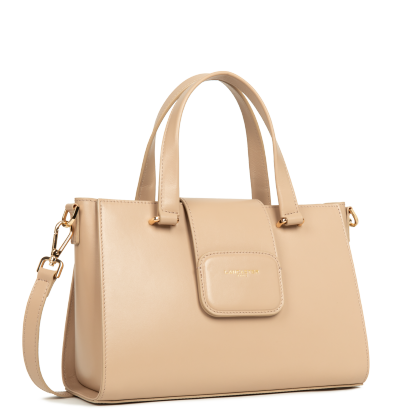 Ce sac cabas à main est confectionné de cuir de vachette lisse. Il possède une fermeture à rabat aimanté, une poche extérieure zippée, une poche intérieure, une poche intérieure zippée ainsi qu'un emplacement carte à l'intérieur du rabat. Il se porte à la main, à l'épaule ou croisé.